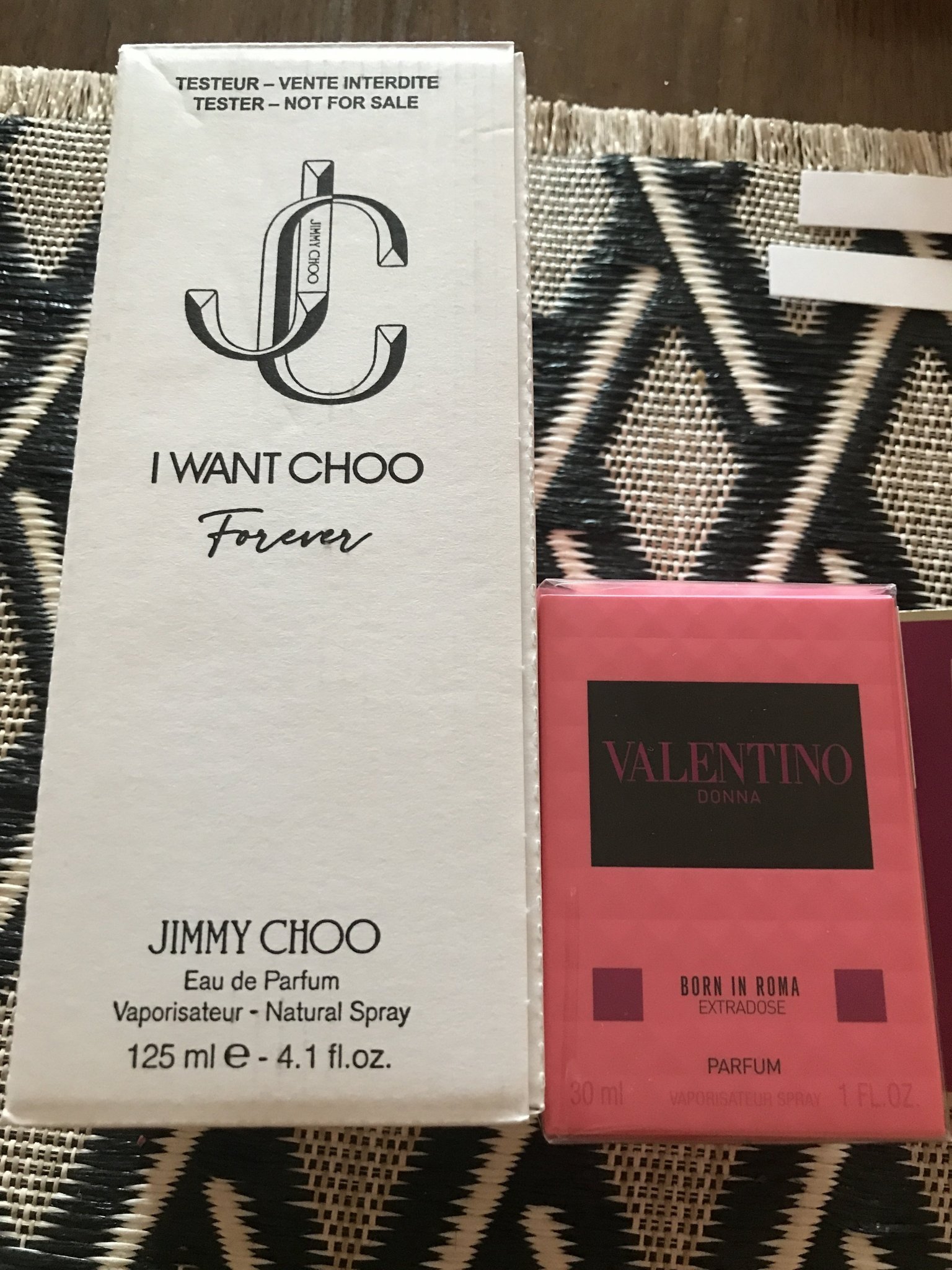 Тестерчето на Чу-то е от проверено място, само се надявам да е траен. Валентино го взех с намалението от Дъглас, няколко пъти пръсках тестери там и ми хареса, дано да се спогодим откъм трайност и развитие на аромата.