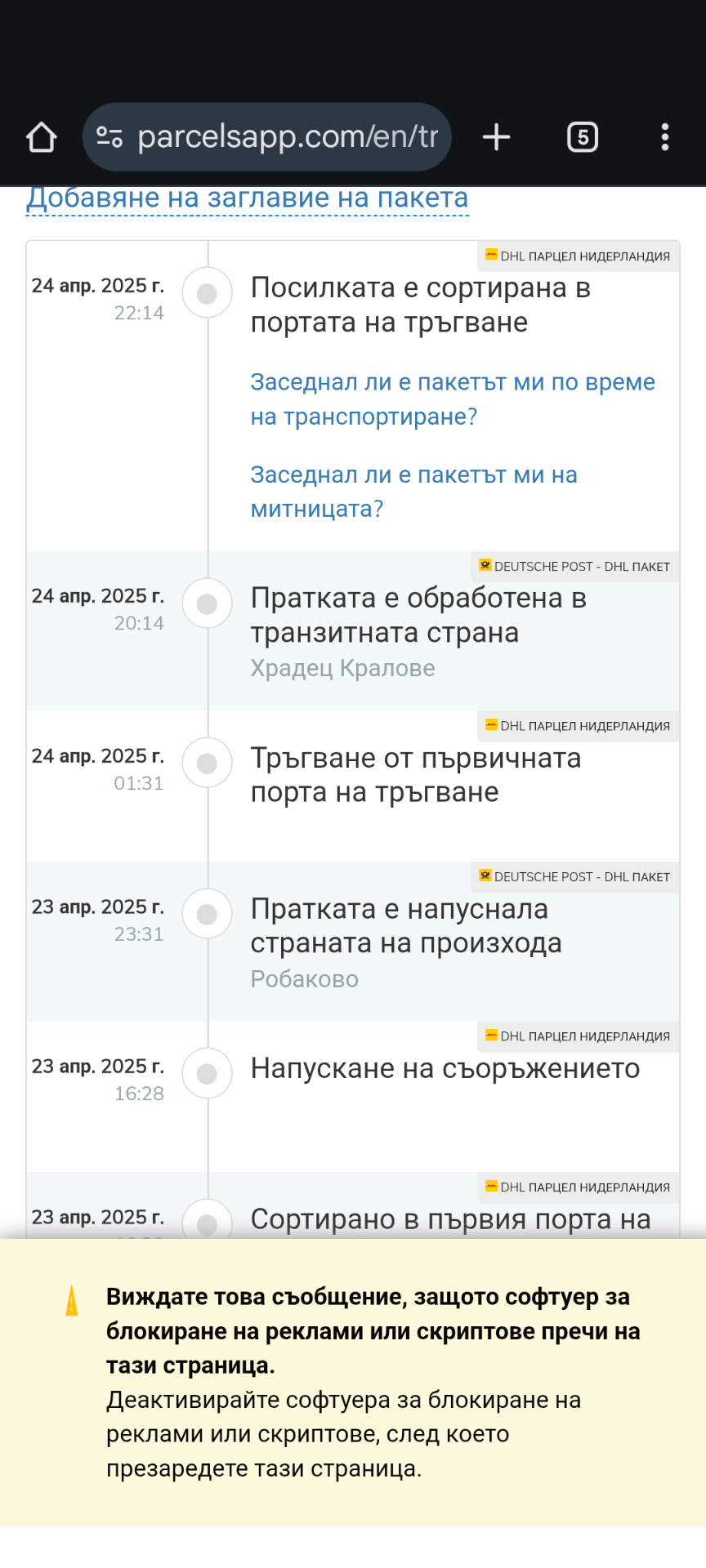 Като пренасоча, и тогава изписва отказана, после започва пак да се движи. Аз ги следя в едно приложение което някой тук беше предложил, става за всички куриери.
