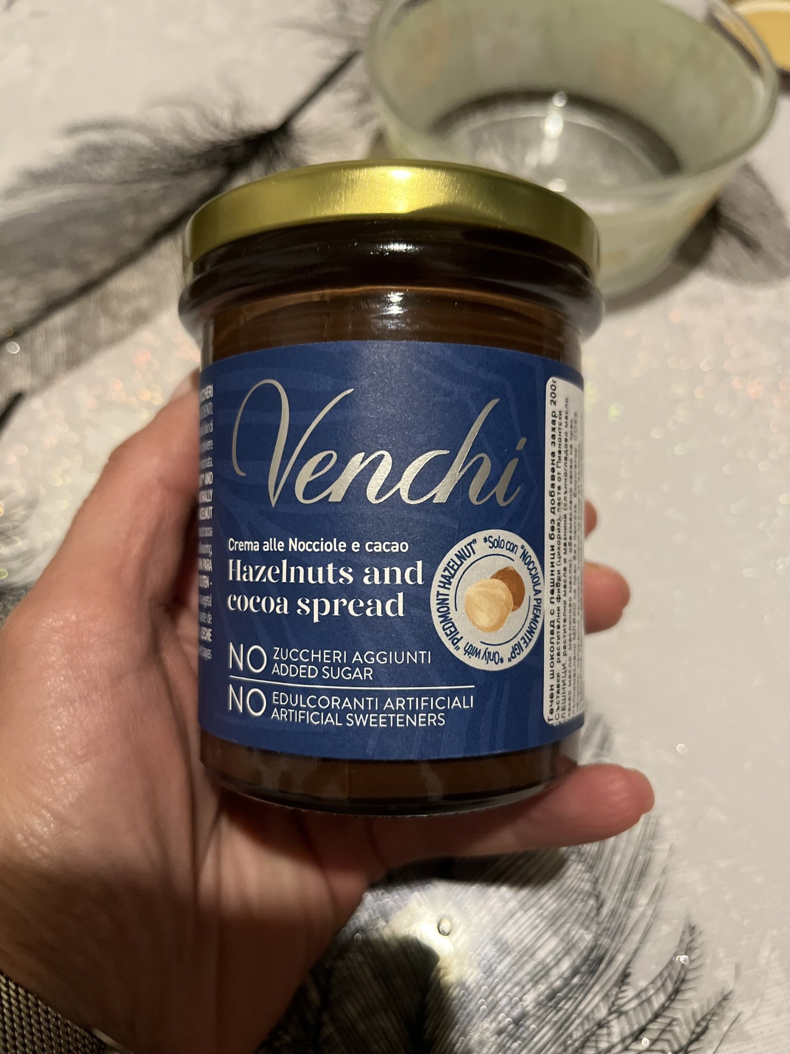 Май магазина се казва Venchi, написан на буркана, верига за италиански неща май.