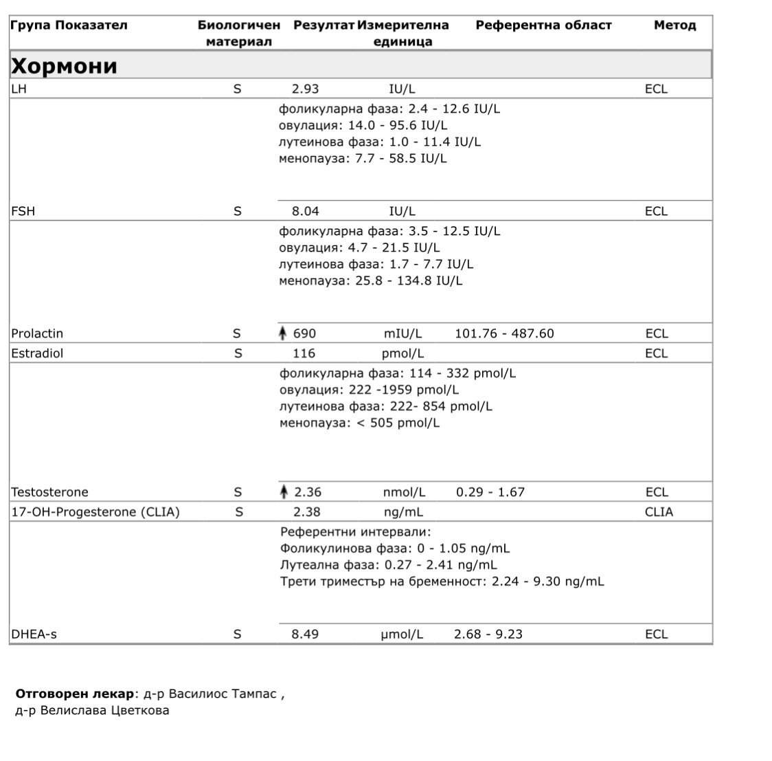 За ниските килограми нищо,отдават го на стрес.За окосмяването имам предписани противозачатъчни и Инфолик.Почти една година прием,повлияване на хормоните няма (високи са).От 4 години ходене по лекари все още нямам поставена категорична диагноза.