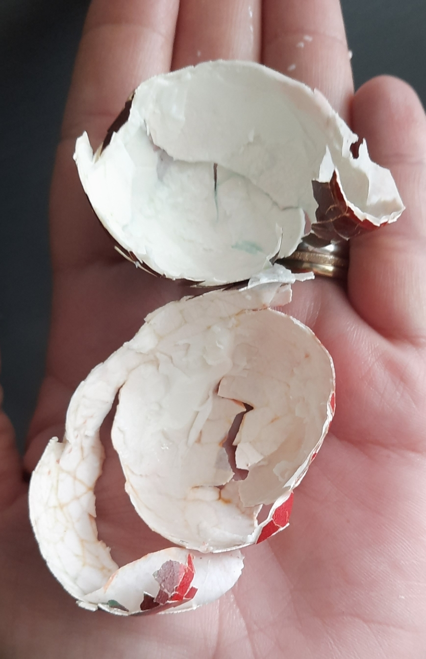 От средата не ми беше хрумвало да почвам, на мен ми е навик да почвам беленето от "дупето" на яйцето - където е въздушният джоб и там ципата е вече отлепена от яйцето. Напуквам хубаво черупката и като почна от този край, аз съм си я подхванала много лесно с все ципата и повечето пъти много лесно се сваля. Повечето хора си имат навик как на тях им е удобно, аз дълги ходини ходех все с дълги нокти и така ми беше най-лесно без яйцето да стане все едно кокошката го е кълвала обелено Grinning