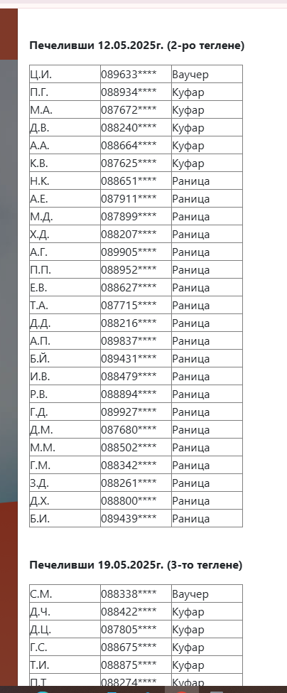 Рали, върни една страница назад тук в темата, коментирахме, че има по 6-7 повтарящи се инициали и телефони в тегленето от 19.05.