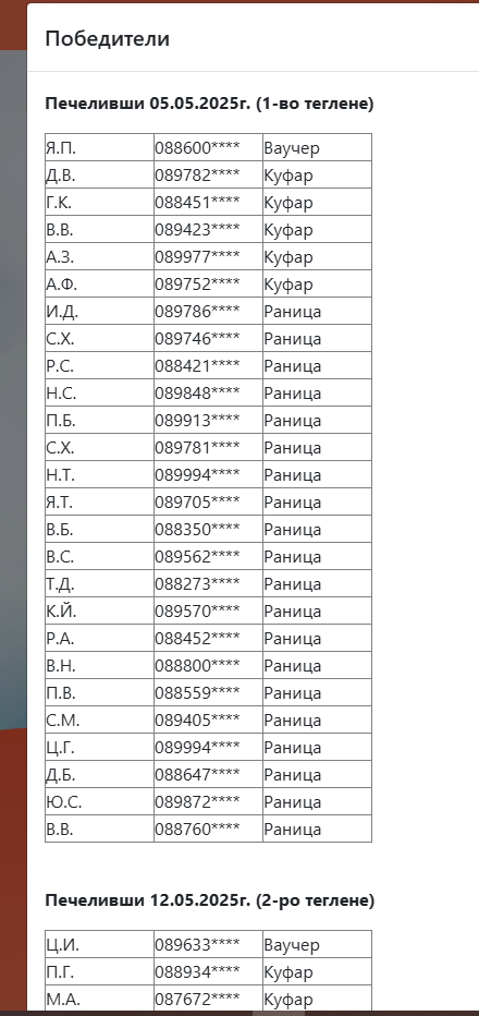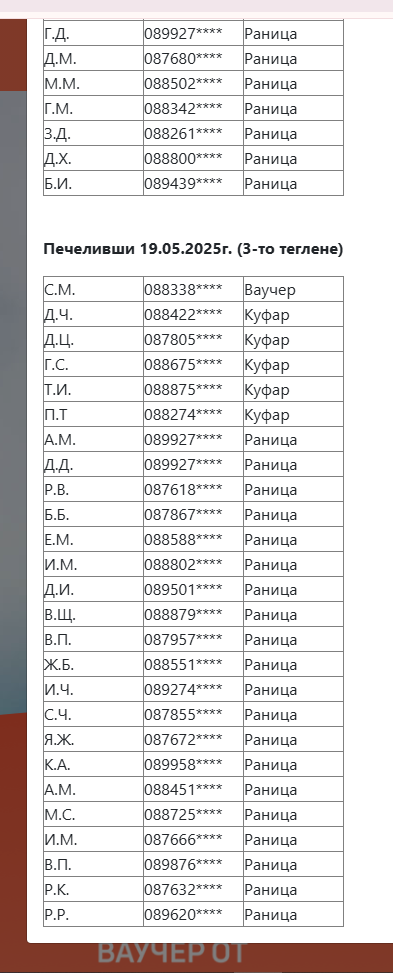 Поста на Dreamvarna е от днес, т.е. след нашите коментари и догадки. Съответно си помислих, че списъкът е актуализиран и Dreamvarna е видяла реалните инициали и част от тел.на печелившите.