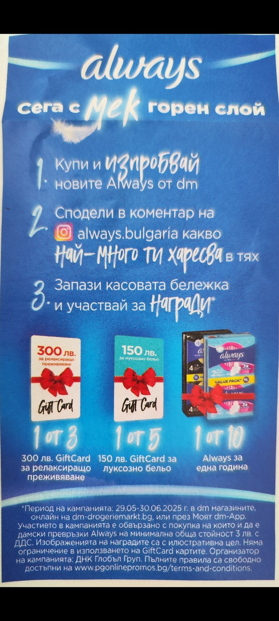 За играта на Always ако има начин да не се качва в Инстаграм, но да се вземе участие, ще се включа, блазнят ме ваучерите и не само де, аз си им ползвам продуктите.