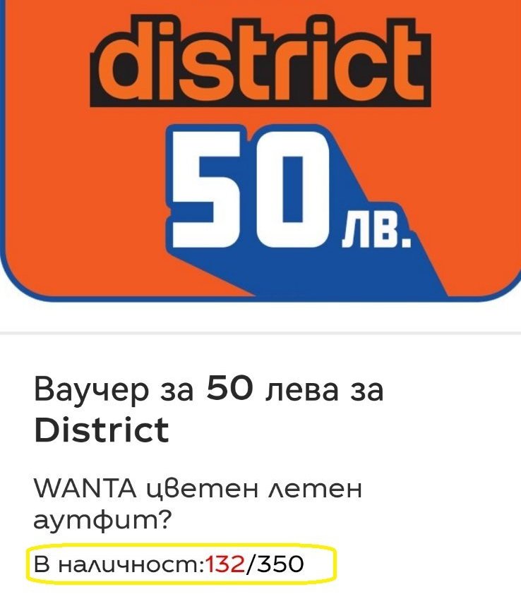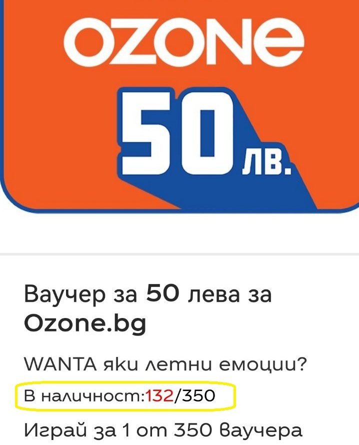 Наградите от седмичните промоции ми дава такава цифра колко са налични от колко възможни. За ваучерите на Озон и Дистрикт не виждам нищо. Версията на приложението е V2.172.2