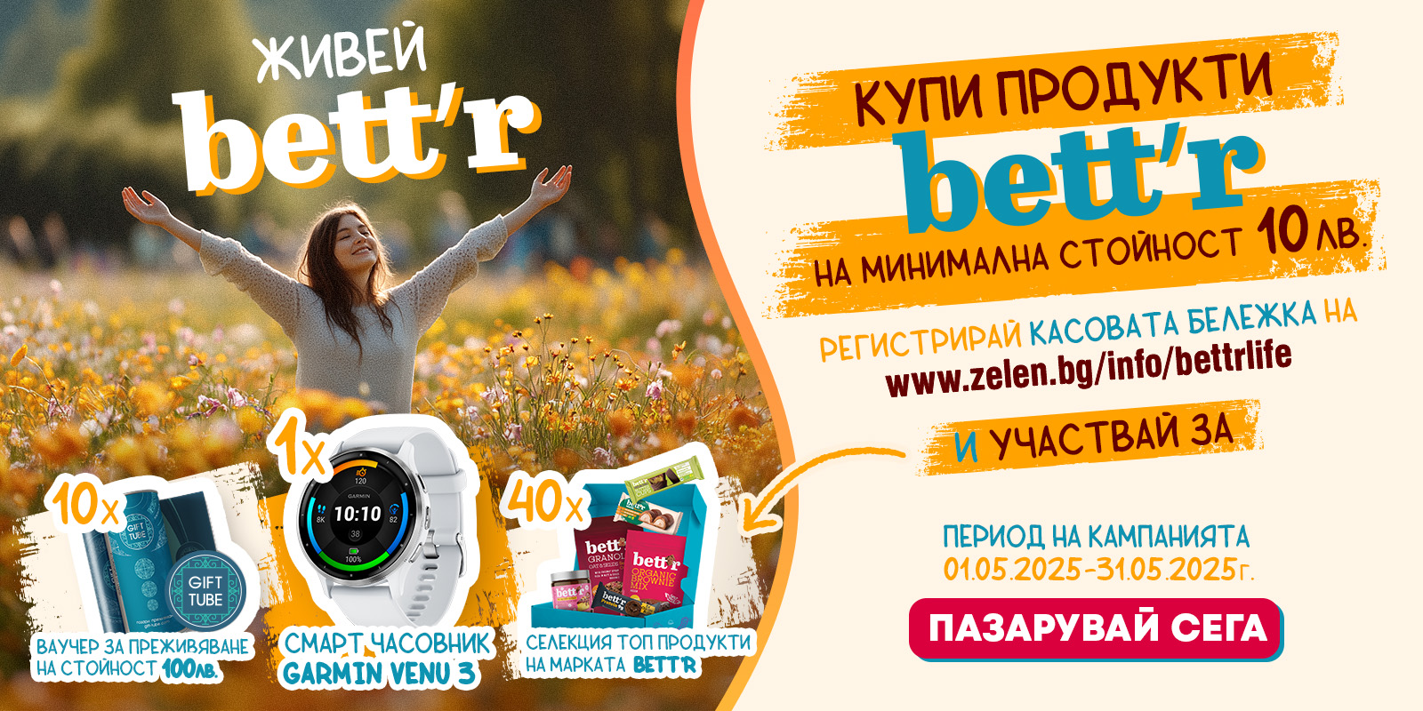 👉 Купи продукти Bett’r на стойност минимум 10 лв. (важи за всички обекти и физически магазини, където се предлага марката Bett’r)