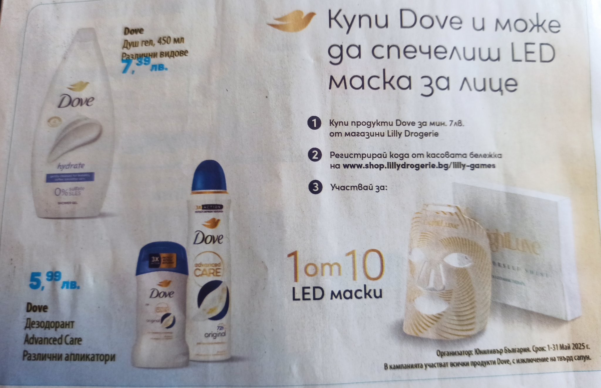 Къде мога да прочета общите условия от игрите на Лили? По-конкретно ме интересува минималната сума на закупени Dove продукти за Led- маската за лице 😁