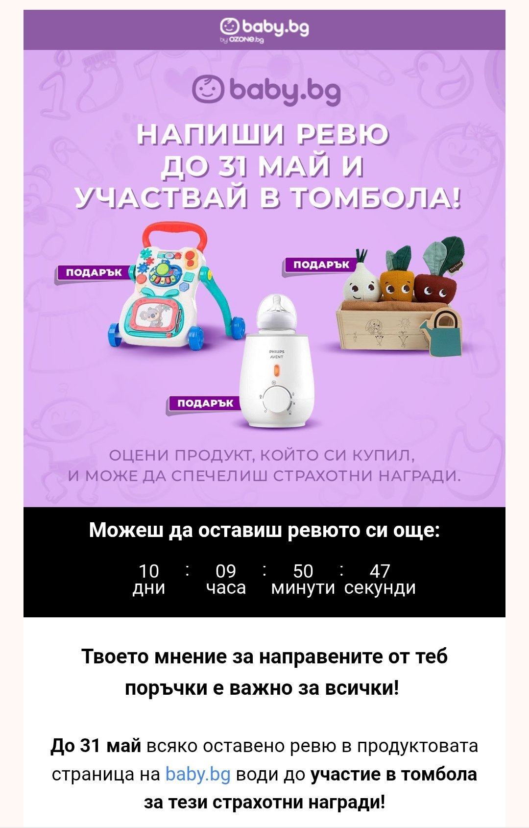 Вече участваш 1 път в тегленето след края на играта за една от страхотните ни награди.