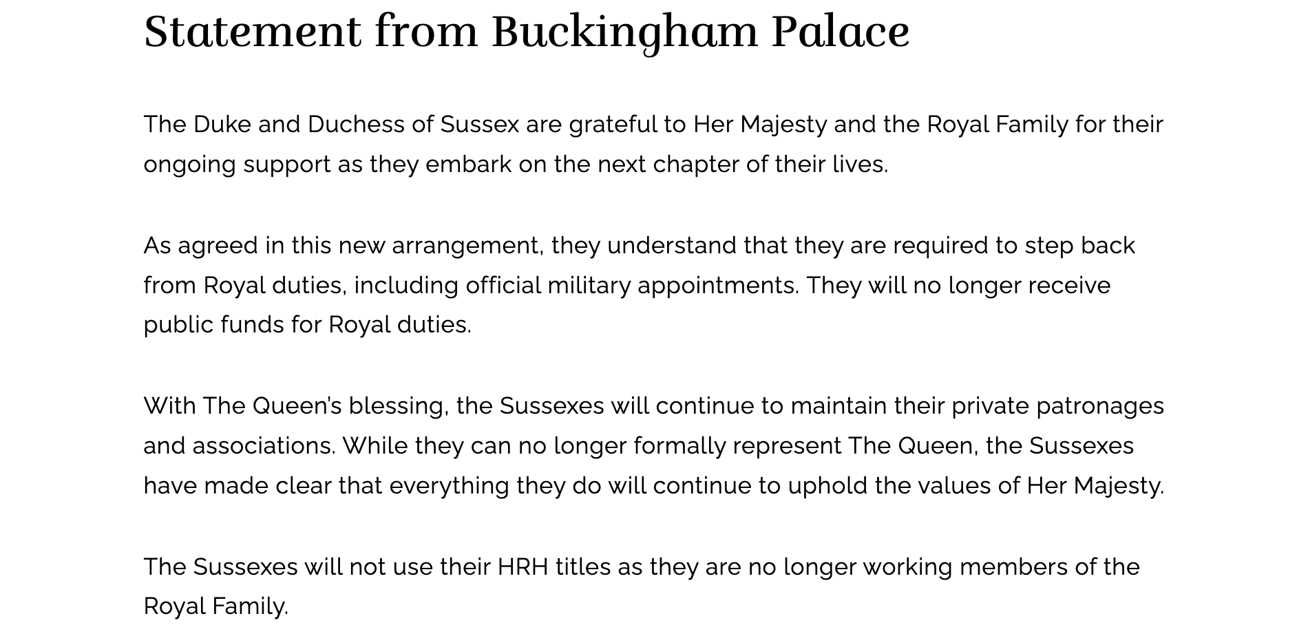 Думите на Елизабет на сайта са категорични - Хари и Меган вече няма да използват HRH, защото вече не са работещи рояли. Няма нужда от изкривяване на фактите, особено когато е написано толкова ясно и категорично. Дори на личния си сайт Съсекс са написали, че след пролетта на 2020 няма да ползват HRH, защото вече не са работещи рояли.