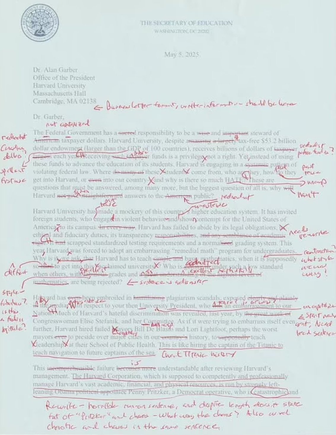 Харвард отговаря на писмото на министъра на образованието, бивша кечистка, Линда някоя-си: