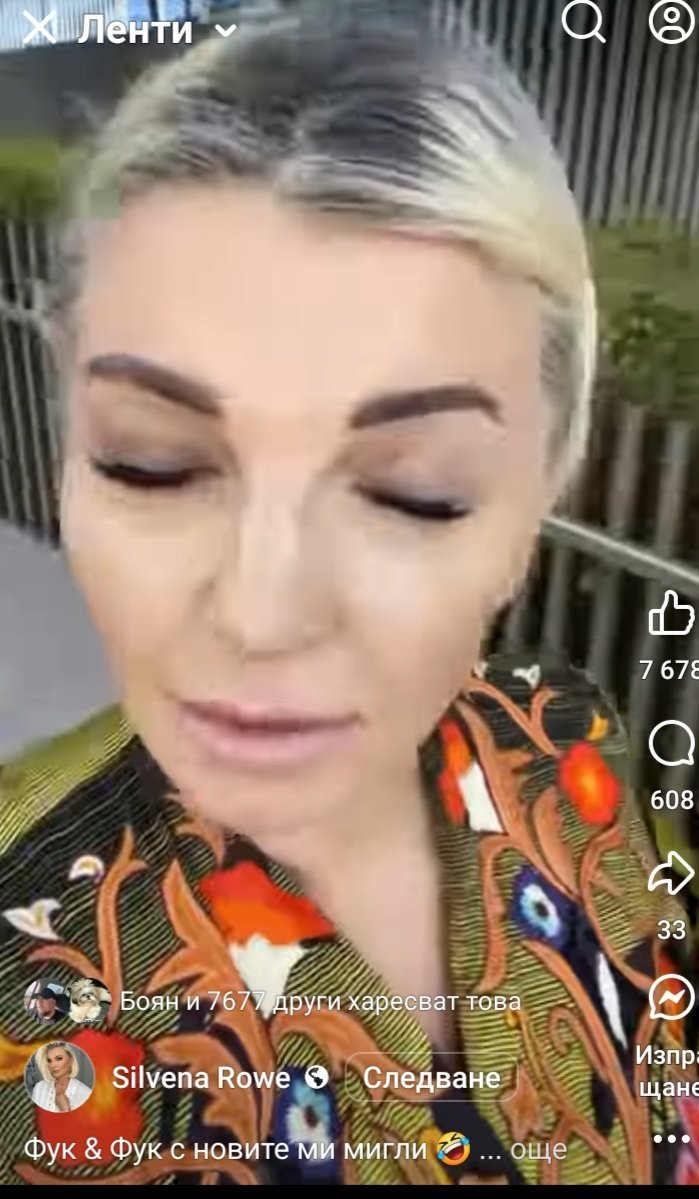 Силвена Роу, както е написала: "Фук & фук, с новите мигли". От мигли няма нужда, но от фризьор-определено. Забелязала съм, че и се подиграват за превзетото говорене и вече казва: Дубай.
