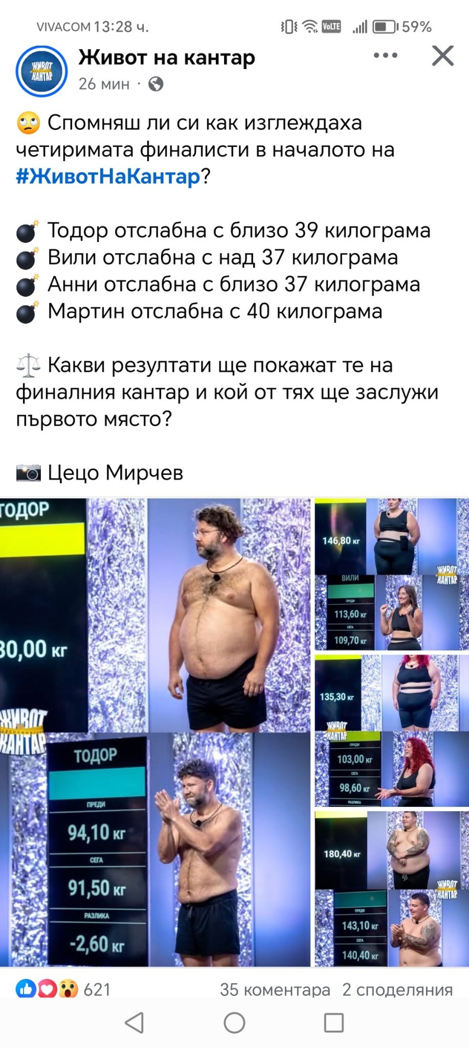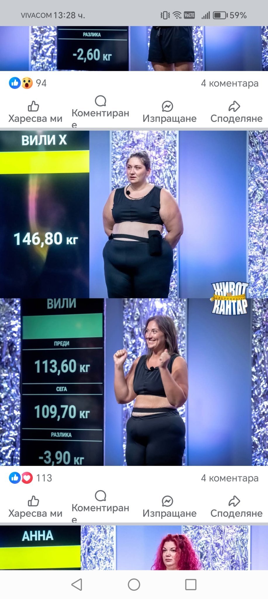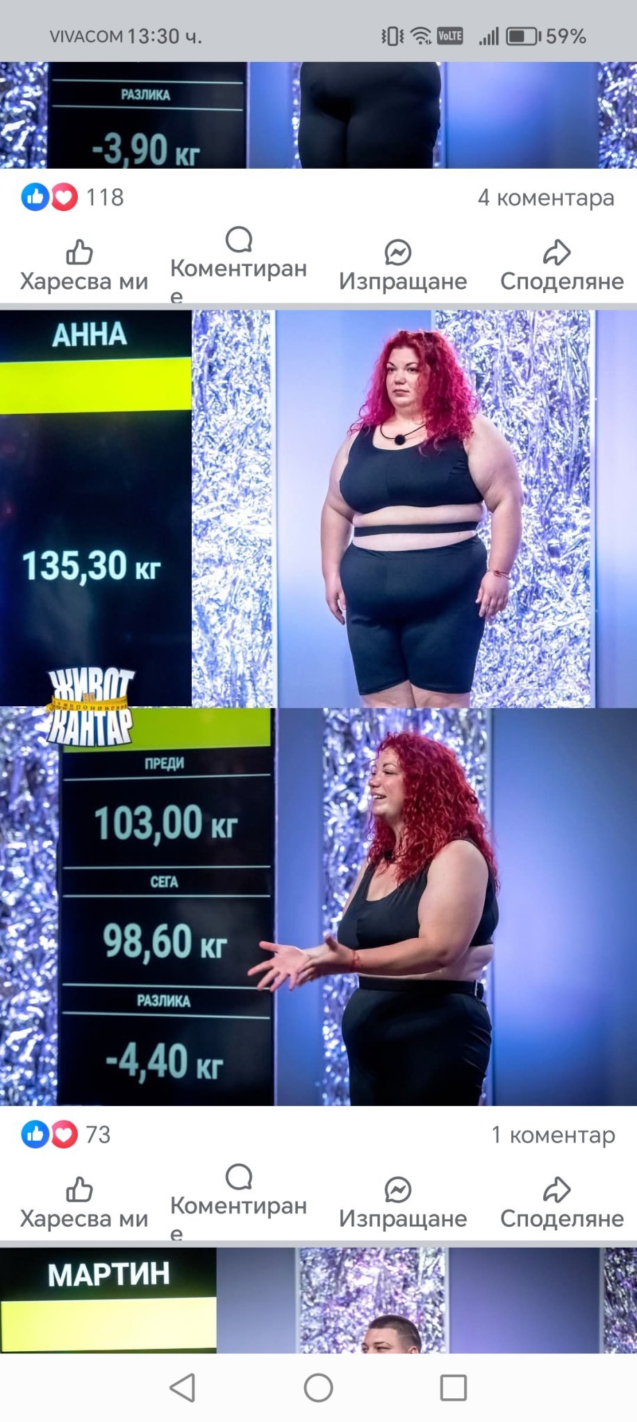 Вярвам, че думите ѝ, че се вижда като част от някое предаване, но вече не като участник са точно тава, което е искала за себе си след участието си. Но е ясно, че едва ли някой ще я сложи на екран, защото това означава да заложи на нехаресван образ. А и ког друг ще може да взема думата от нея! Ще има само : АЗ, АЗ, АЗ! И нека не забравяме за целта, заради която иска да отслабне - да стане майка/ не я харесвам, но от сърце ѝ го желая!/ Ако наистина това иска - нека се фокусира върху него, а не да се занимава с нашите анонимни мнения, книги и бъдещи изяви пред камера / предвиждам такива само пред нейната собствена както и до сега/