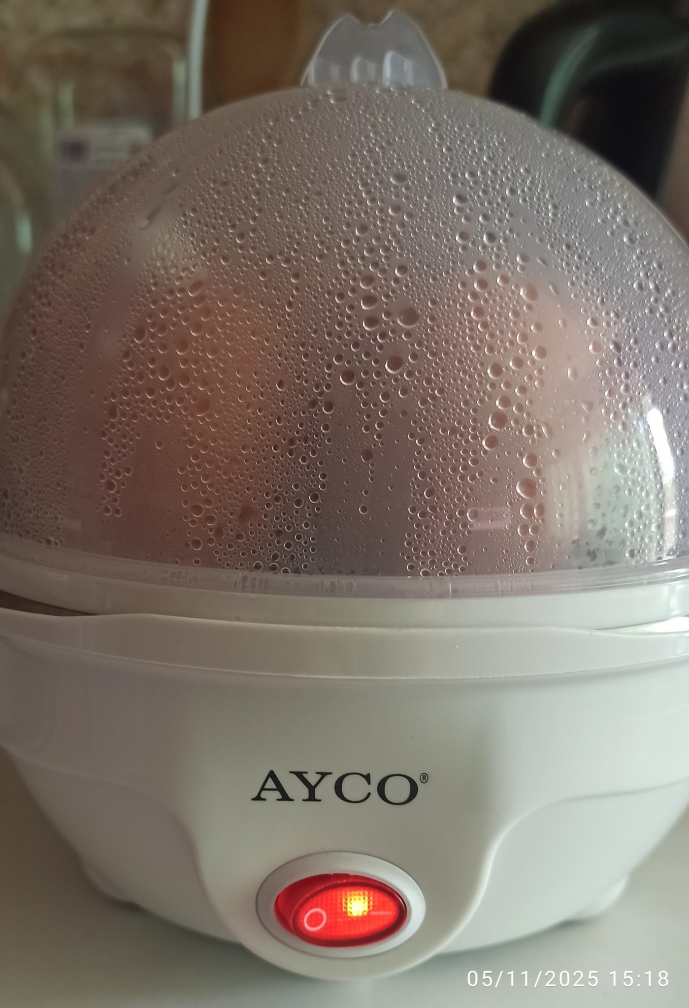 Моята също е от Кауфланд, но на друга тяхна марка Switch on за 6 бр. Много я харесвам, има пронизителен звук при изпарена вода и това и е удобството. Много я ползваме, защото може да се регулира твърдостта на яйцата, според добавената вода.