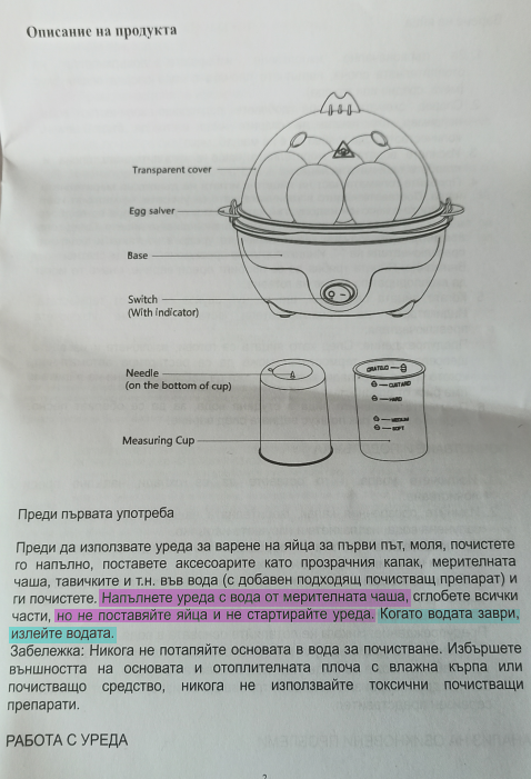 Те вече са позеленели от варене яйцата😄 Имам същата, много е тъпа, идеята е да забележиш, с колко вода от мярката, какви яйца се получават и като свърши водата, изключваш я.