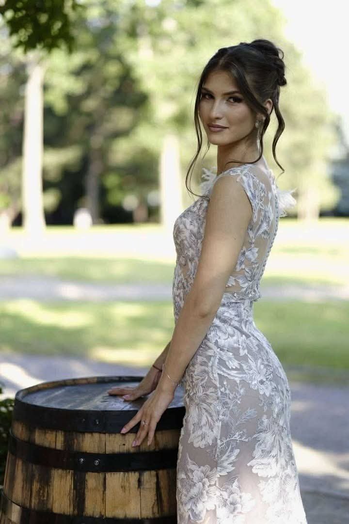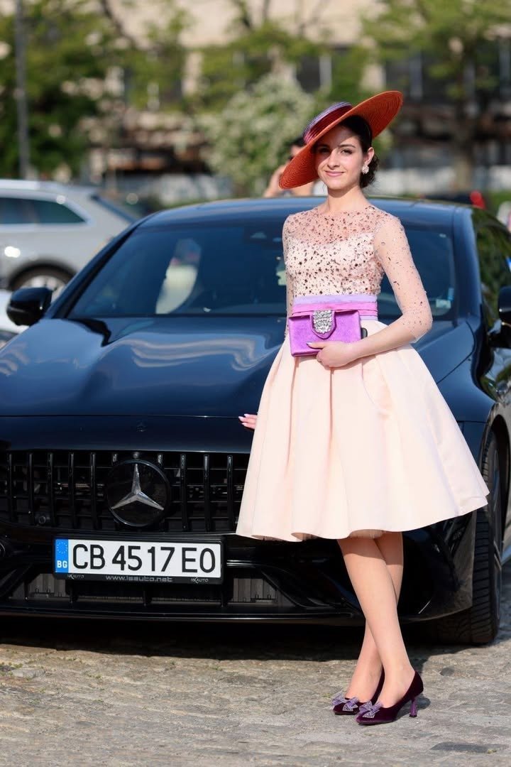 Девойката е прелестна, но шапката е за дневно събитие, не за вечерно. Без нея вече си е вечерно официално облекло.