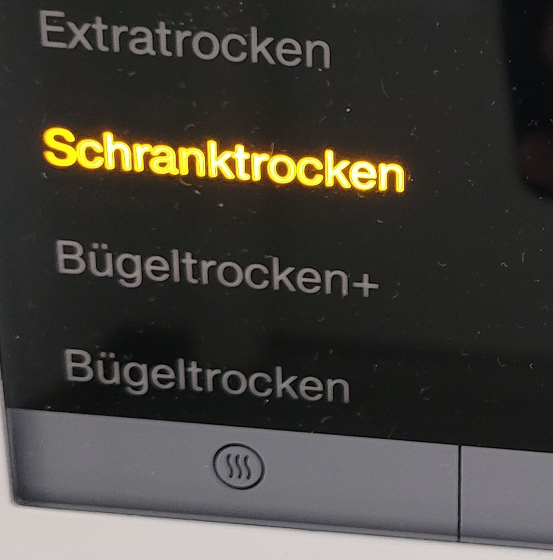 Моята сушилня е някаква обикновена, Hoover. Та не знам дали ще съм ти от помощ, защото моите програми са за гардероб, за завивка, за закачалка, за гладене и подобни. Вероятно в книжката пише кое е за памук, ама я нямам, не съм й търсила. Суша основно за закачалка, на микс и за гардероб, зависи колко дрехи има и какви. Нямам нищо свито. А твоята е хубава марка, та не мисля че е от машината.