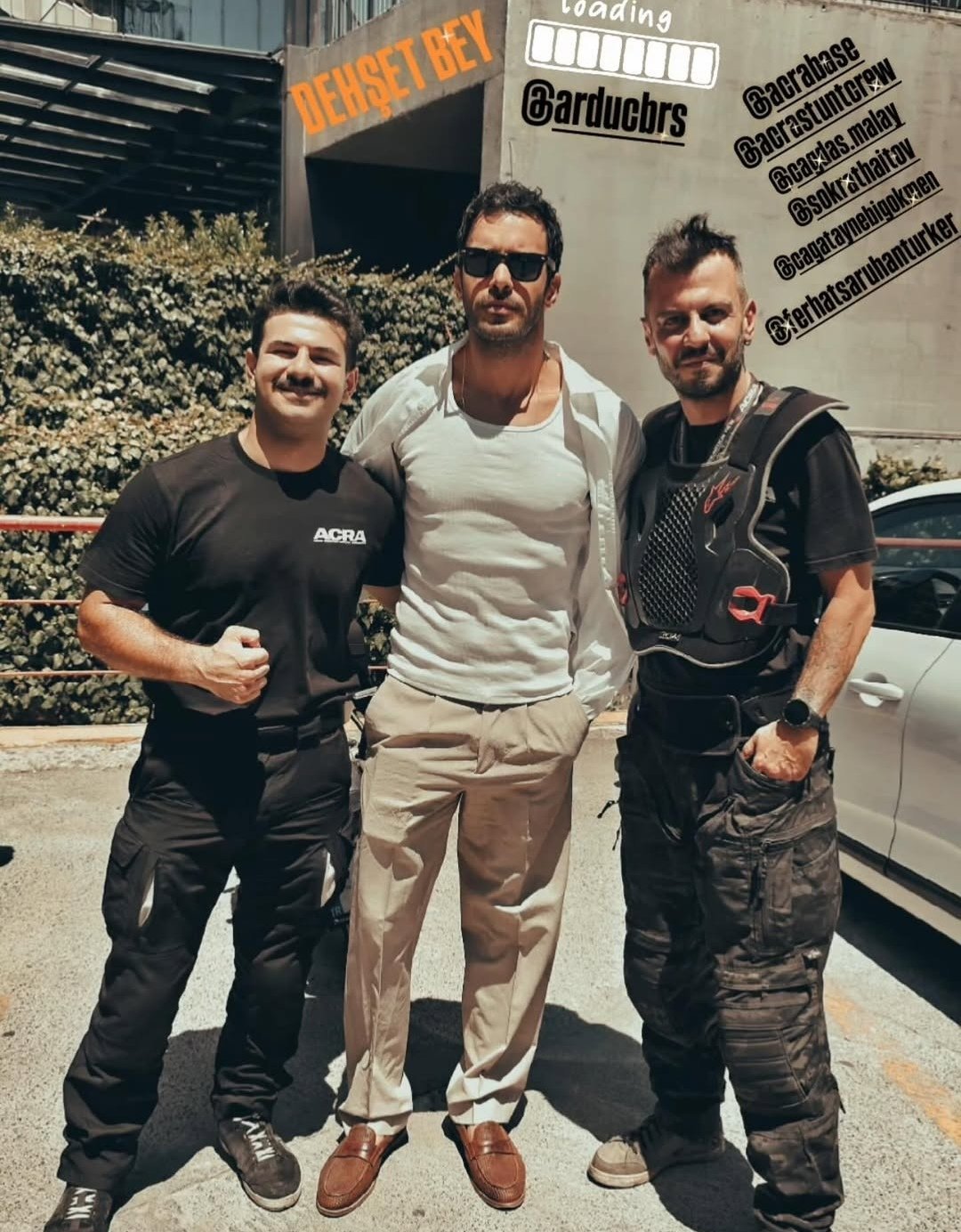 Баръш и човек от екипа на каскадьорите и режисьора на каскади на филма "Dehşet Bey - Дехшет Бей" .🎥🎞️🖤✨