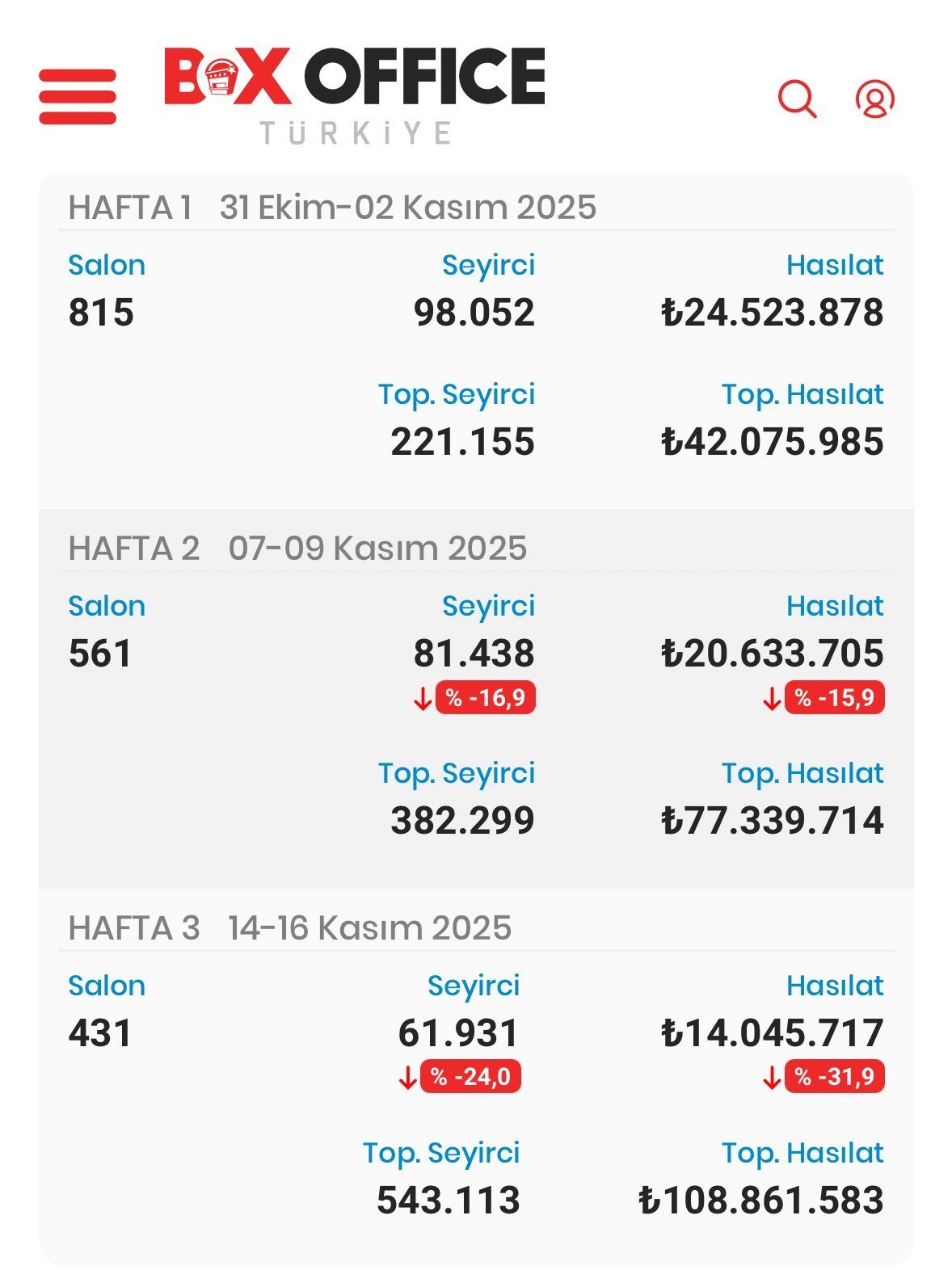 @BoxOfficeTurkey е гледан от 105.229 души през седмицата 14–20 ноември и общата бройка на зрителите достигна 586.411!