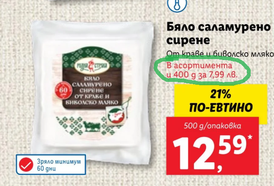 800 грама е сиренето смес - винаги е с този грамаж като пускат тази оферта.