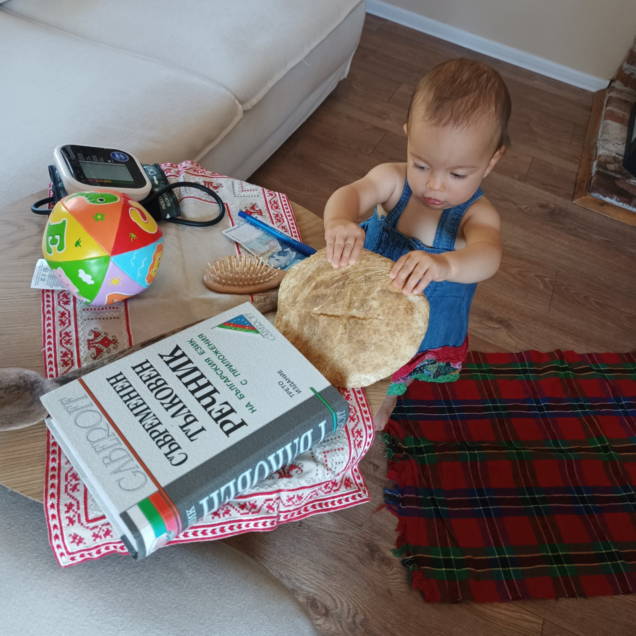 О, и на следващия ден след кръщенето тя проходи 😲 та направихме и прощапулник, и стига толкова за тая година 😬😁 Хвана се за химикала, доволна съм! 😎 Бях го нарекла за учител, ама писател по-добре! След това нападна и питката😁