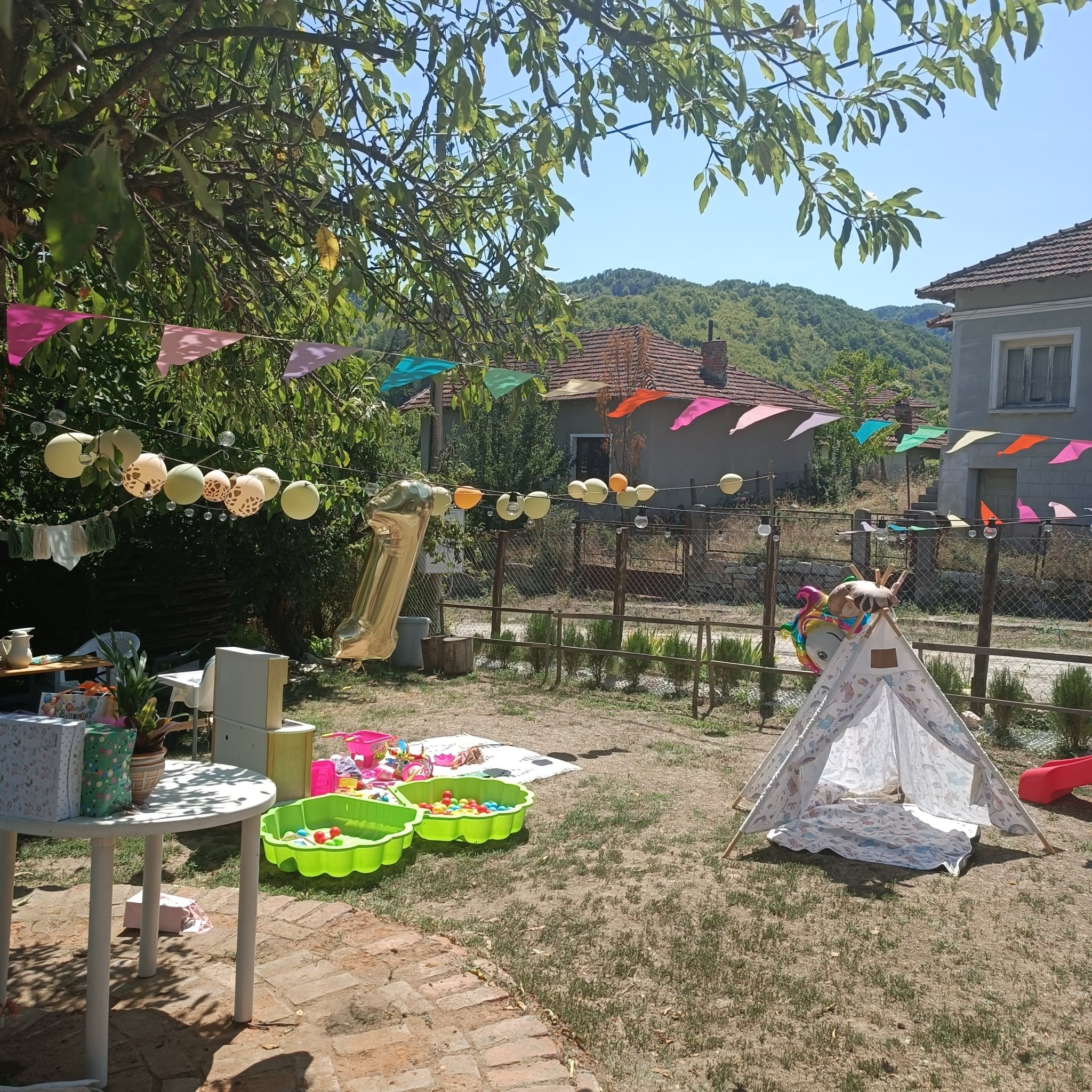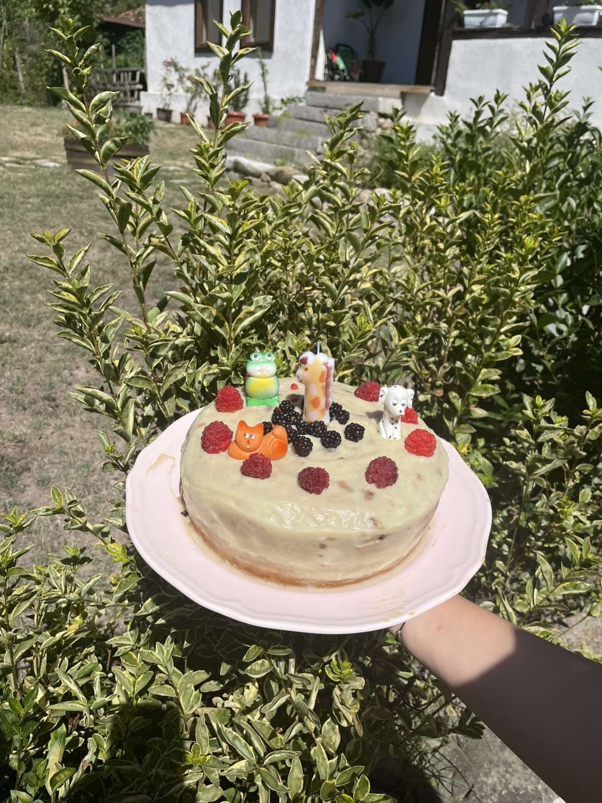 Ние на деня си направихме рождения ден с приятели и деца на двора. Беше изключително спокойно и приятно! Не можех да повярвам, че този път не сме на чужд рожден ден, а на нашия! 😲😀💜 А два дни след това беше кръщенето в селската ни църква, а после обяд с роднини, басейн и веселба в съседна къща за гости. Вида през цялото време в църквата пееше, говореше, смееше се, раздаваше целувки на всички, беше много смешно...😁 Изобщо не е плакала. После си легна с мен и се сменихме с майка ми, за да се върна при гостите. Всичко ние си бяхме приготвили и за двата дни, та си беше изморително доста, но пък обичаме да е така. Направено от нас с много желание и любов. Торта имаше на 14ти детска, получи ми се 😀 без млечни и захар. А за кръщенето направих торта ,,Шах" за възрастните вече, както си трябва 😀