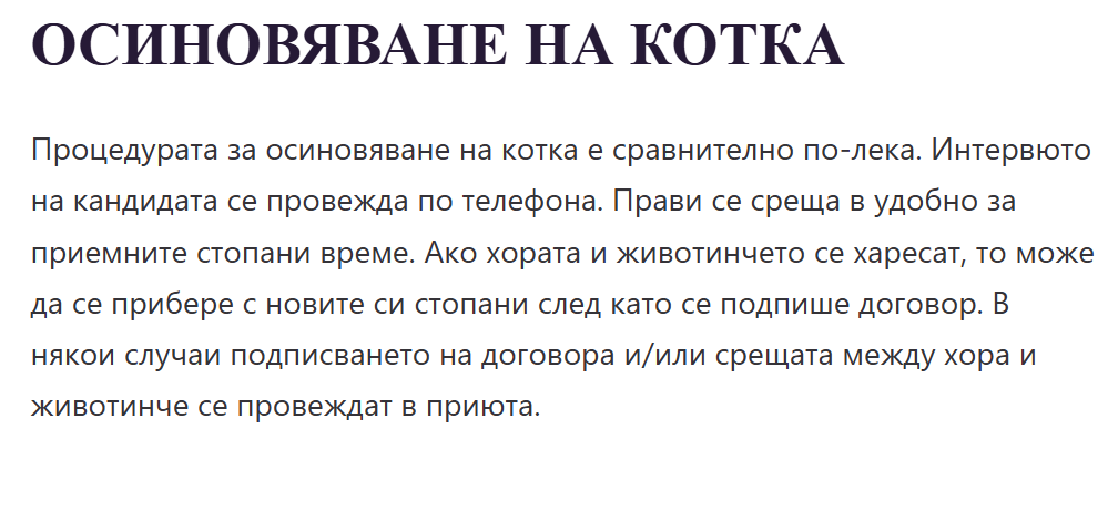 ), дадох информация за себе си- къде и как живея, как се грижа за котката си и попитах за условията им за осиновяване, но отговор вече 5 дни няма никакъв, а съобщението е видяно. Не знам аз ли нещо грешно съм написала- имам вече осиновена котка преди 12 години от Приятели на животните- Бургас, и си спомням въпросите, на които трябваше да отговарям тогава, затова и сега директно си казах и майчиното мляко