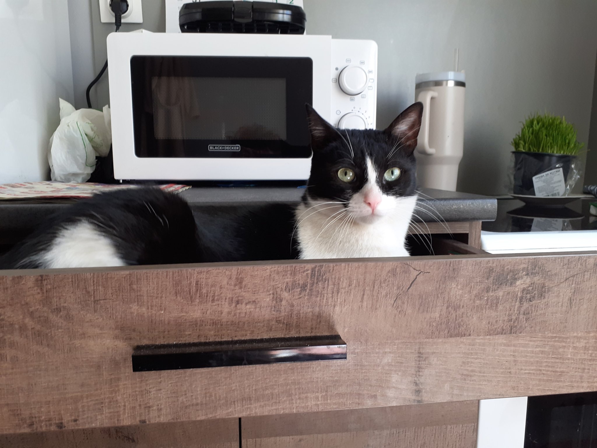 Ох, боже, снощи бях забравила да затворя вратата за терасата в кухнята (защото уж голямата Мими даваже зор да влиза, но така и не влезна .. ) и аз се върнах в хола. Там също има врата към същата тераса и се виждаше само Мими. Лаф мохабет към 15-20 мин.
