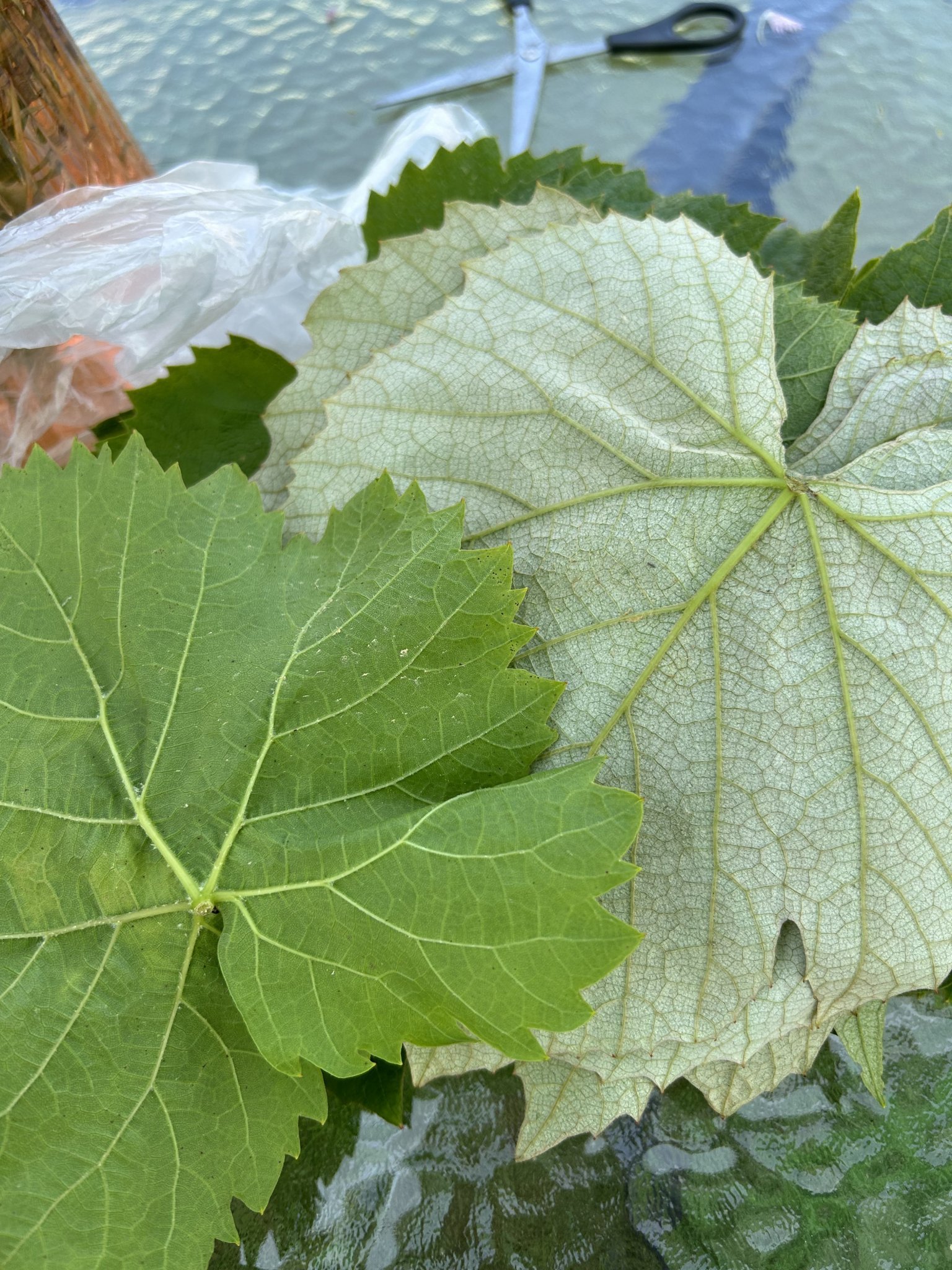 Момичета здравейте, събрах лозови листа , два вида но искам да ми кажете тези светлите дали стават според вас? ( сърмички ще правя ) предпочагам че не стават , леко са мъхести такива  , но пък са големи..