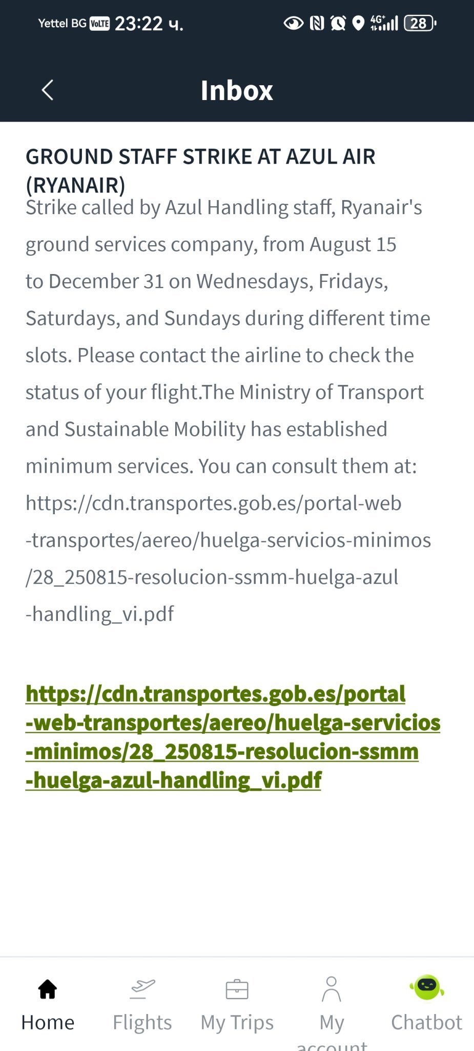 В приложението на Aena вече има информация за стачката. Твърдят, че ще осигурят някакво минимално обслужване, но не пишат какво точно.