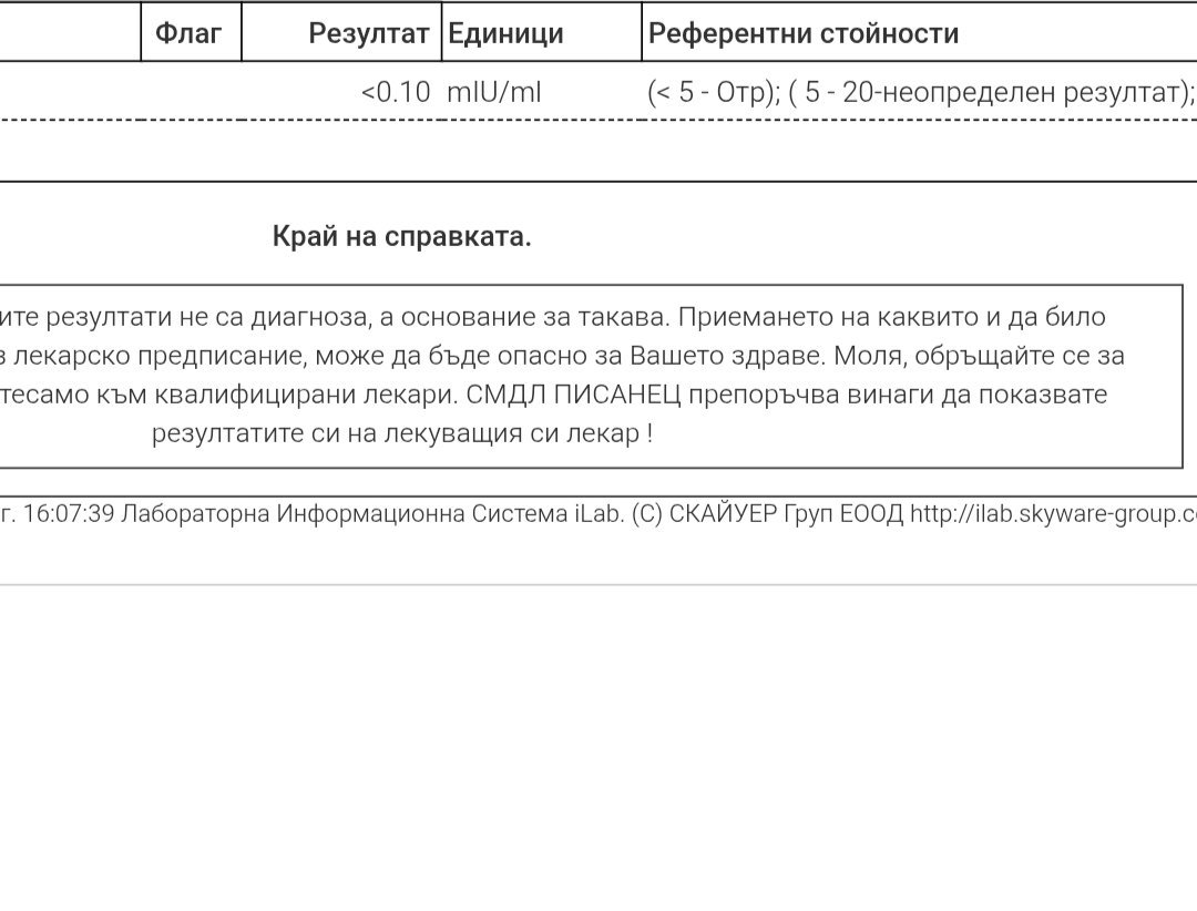 05.09.2025 - 1 ден закъснение. ЧХГ 67.91. Прогестерон 19.1