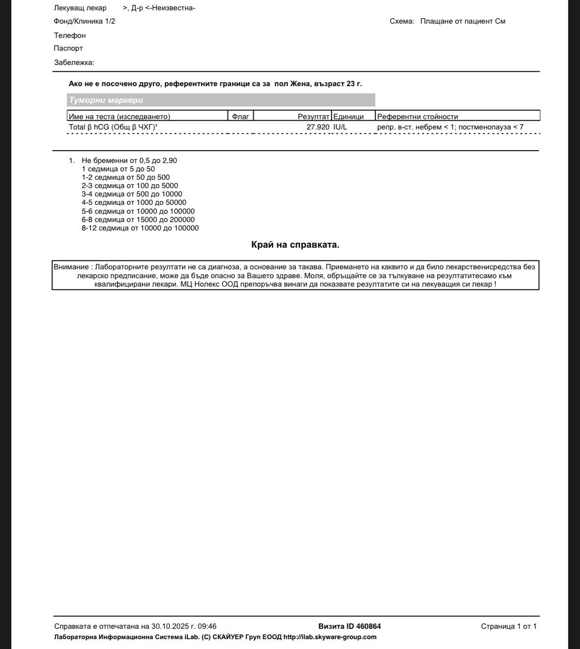 Здравейте, прикачвам резултата от кръвния днес. 4 дни преди мц. Как ви се струва нарастването за 2 дни? От 3.950 6 дни преди мц, и днешния резултат 4 дни преди мц.