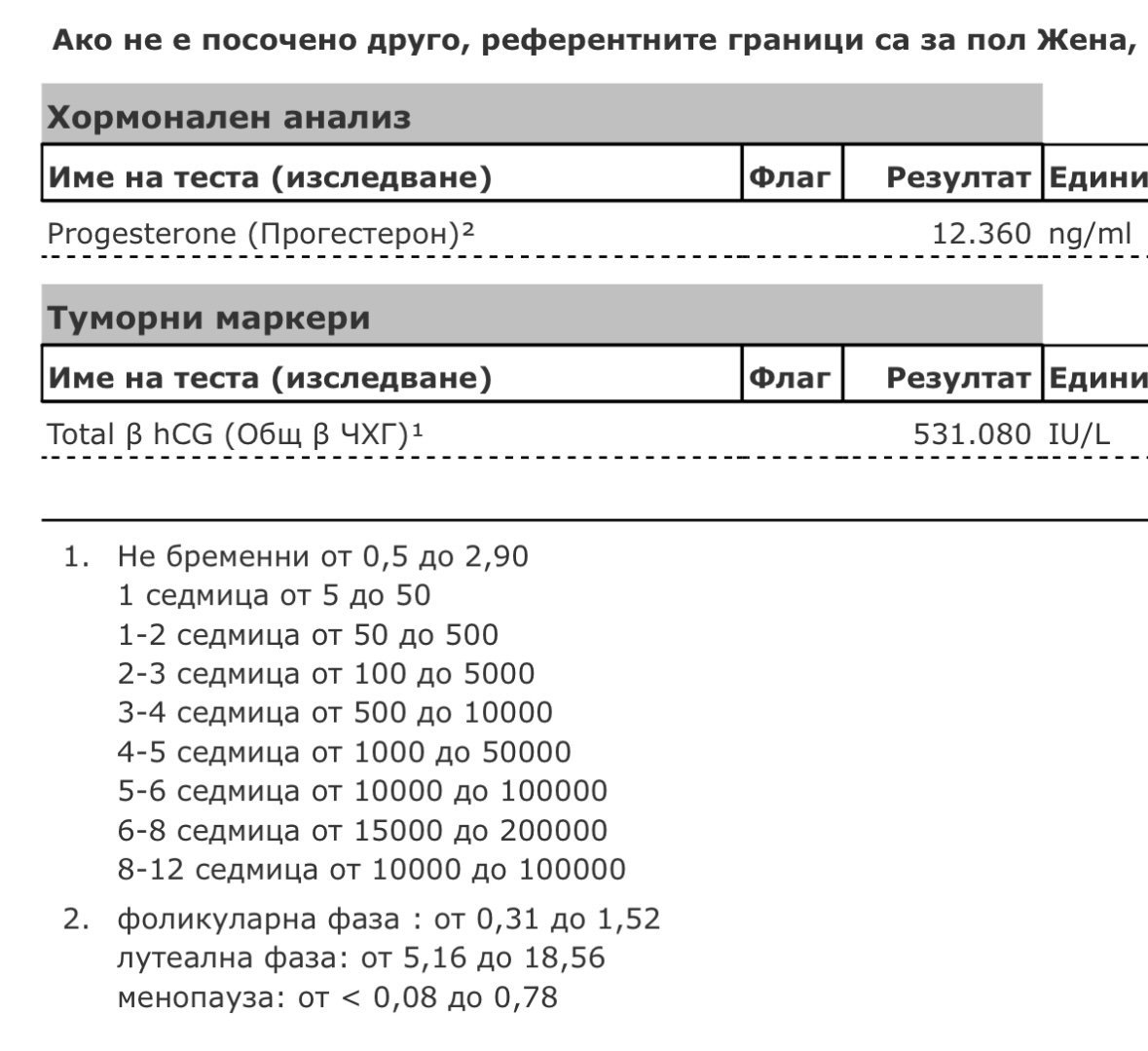 Кога е датата на очаквания МЦ? Ако още няма закъснение и са минали около 10-11 след предполагаемата О. мисля че е добре резултата. Имплантацията най-често настъпва 6-10 дни след овулация. Пуснете пак след 48 ч в същата лаборатория.