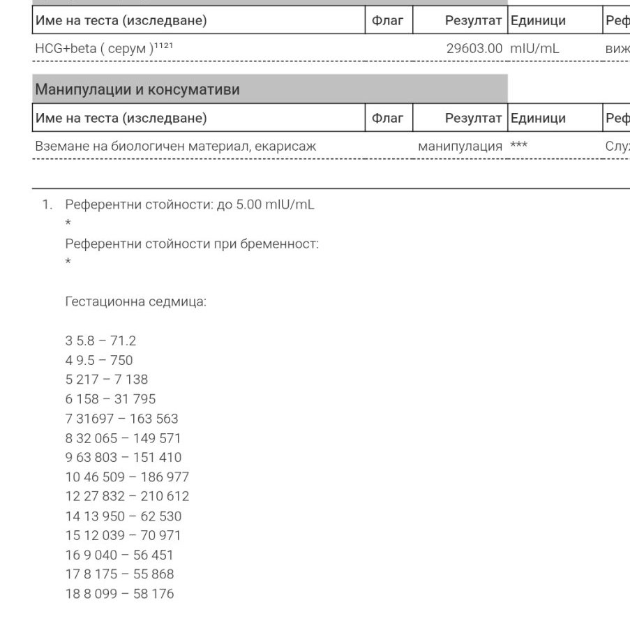 При моята неуспешна бременност ме караха да пускам ЧХГ в 8 г.с. и д-р Ковачева от Майчин дом ми каза, че трябва да се удвоява. Бях потресена, но от нея чух и куп други неверни неща. Резултатът ми беше 75 000 и нарастваше и въпреки това ембрионът спря развитие. Абсолютно е безсмислено да се проследява след 6 г.с.