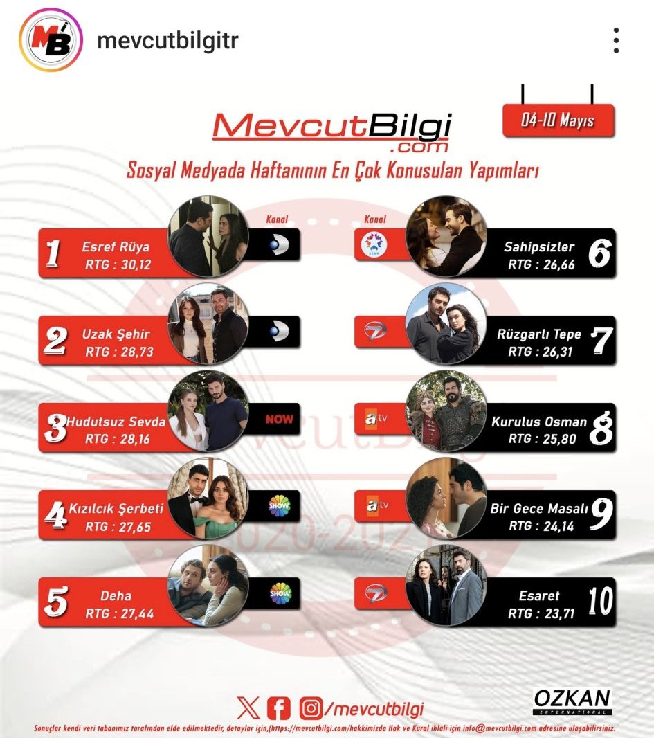 Сезонът на "Eşref Rüya" ще приключи на 18 юни с 13 ти епизод.