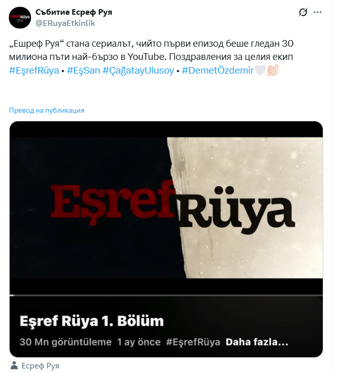 Първия епизод на "Eşref Rüya" е гледан 30млн. пъти за един месец!