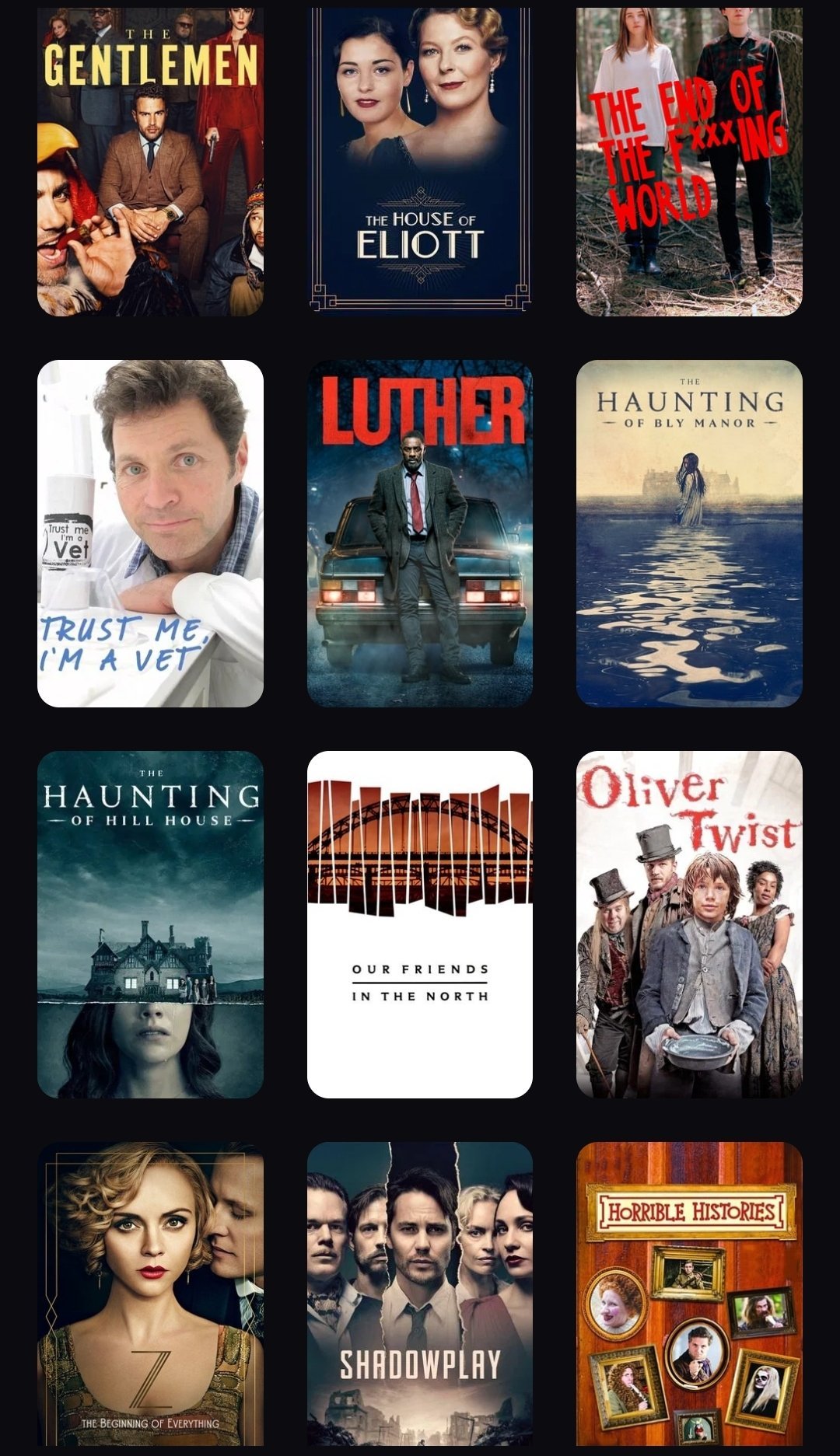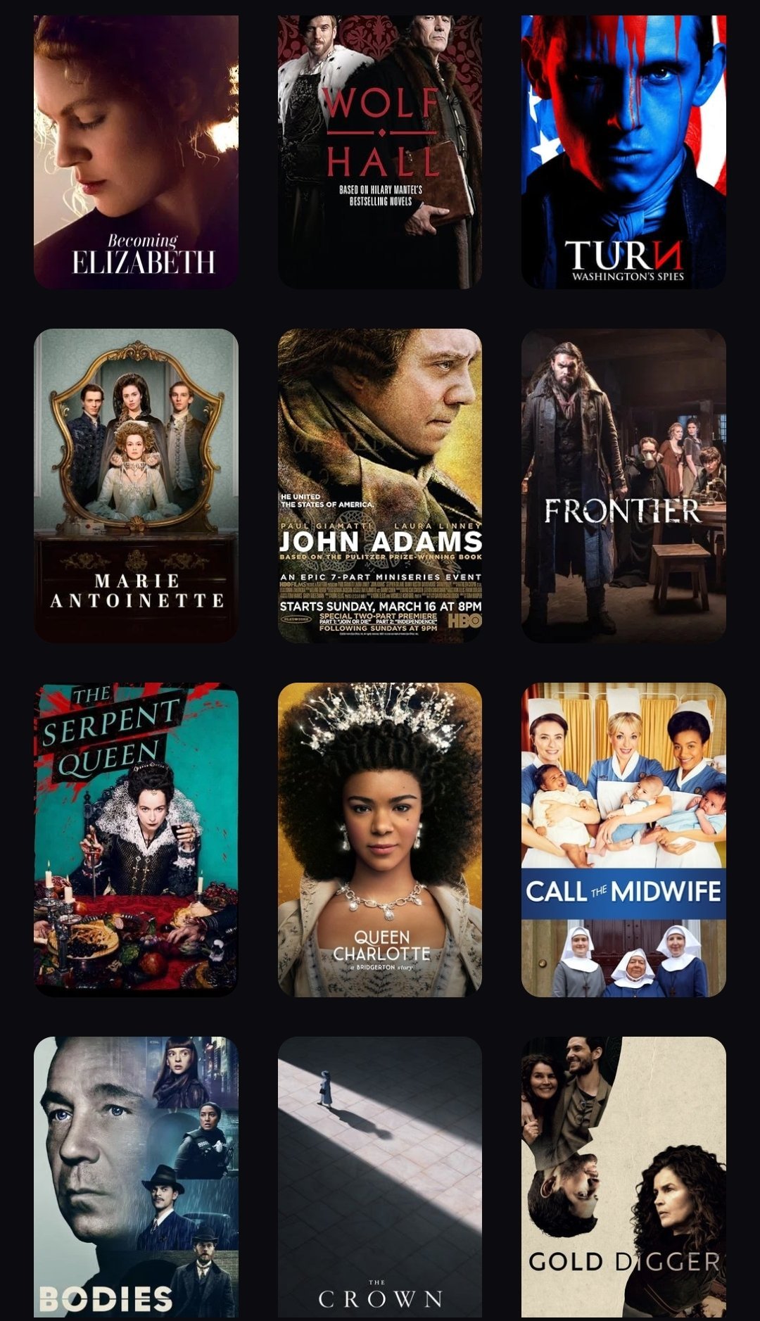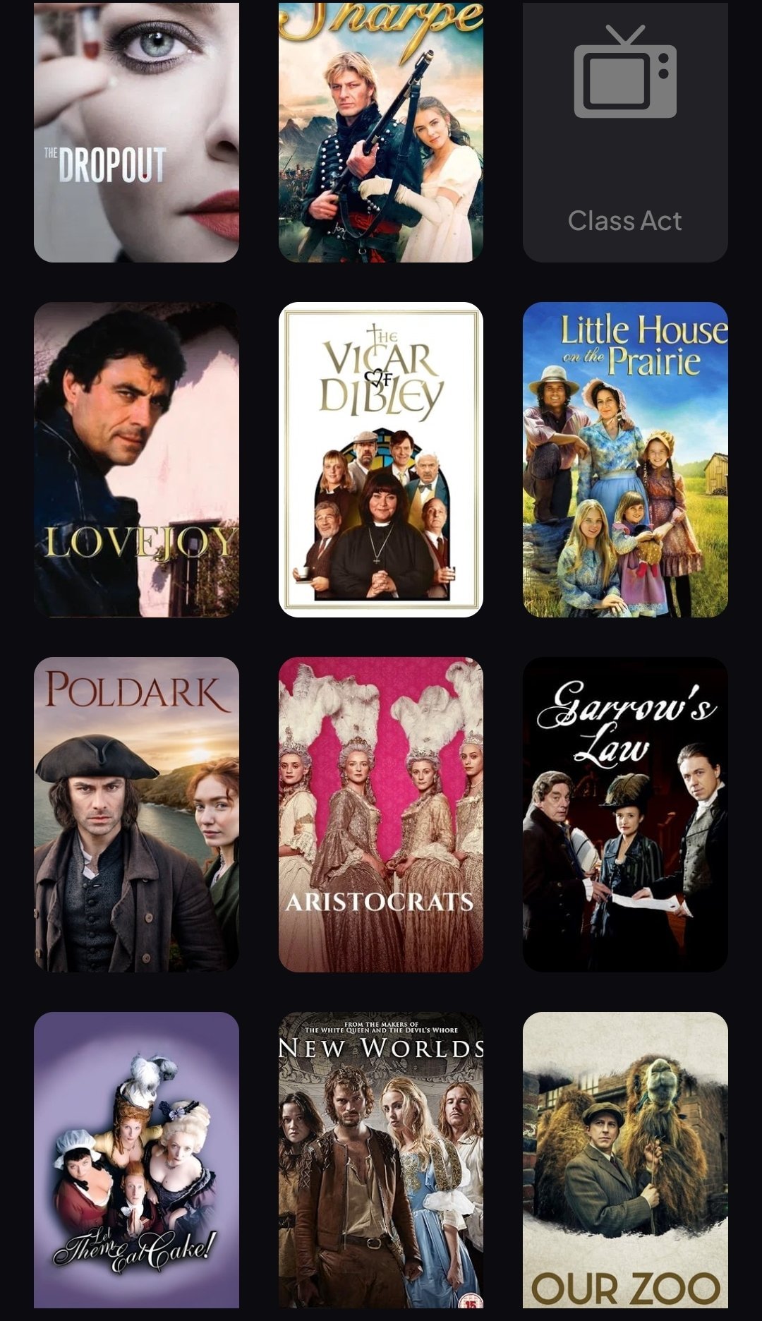 Моите са предимно период драми Grinning и като цяло наблягам на британските сериали.
