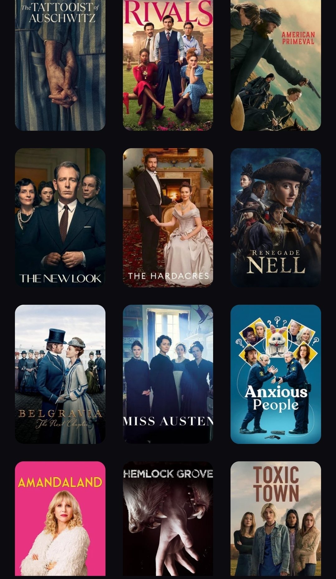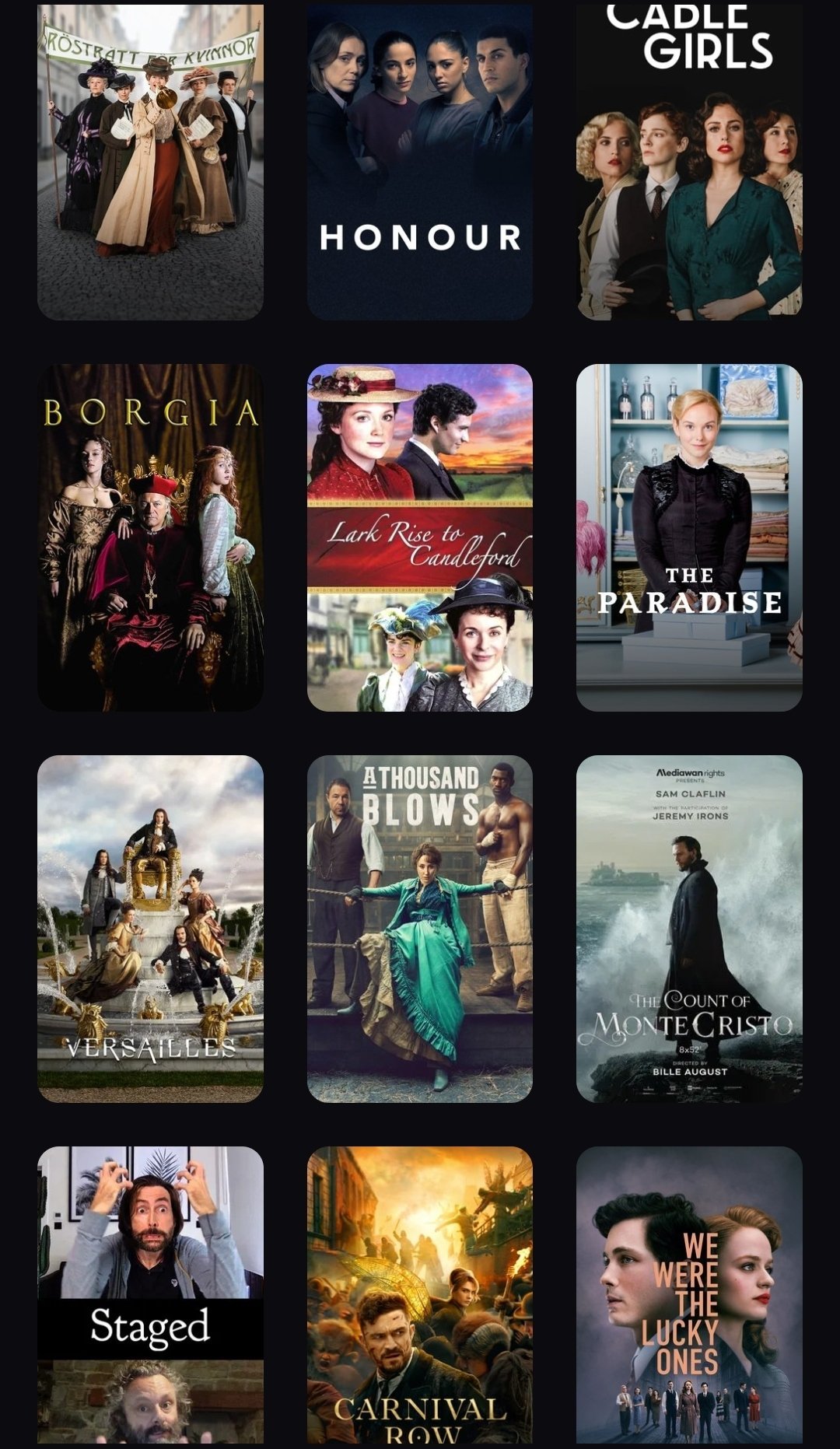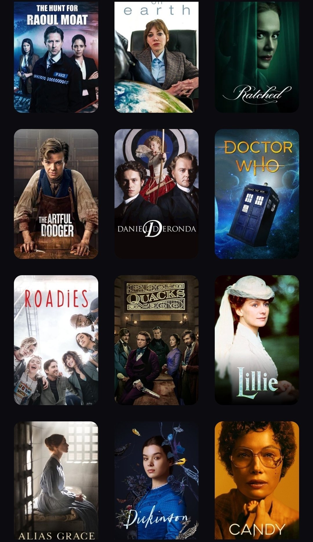 Моите са предимно период драми Grinning и като цяло наблягам на британските сериали.