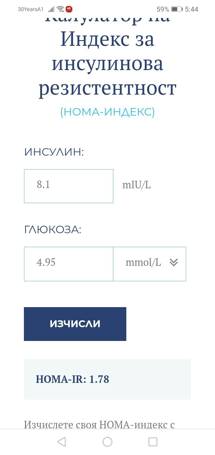 HOMA индексът си го изчислих сама, не знам колко е верен (от кр захар и инсулин на гладно)