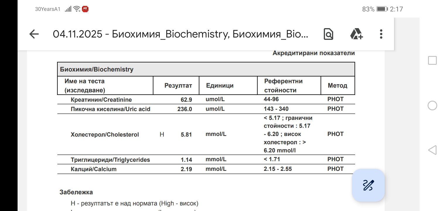 Ето и триглицеридите, сега са в норма, но преди 1 година и те бяха високи.(6 месеца преди изстрелването почти не съм яла месо, хранех се 1 път дневно и оскъдно) Иначе: