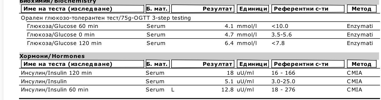 Не съм имала диагноза ИР, но понеже два пъти през годината се случи да имам повишен инсулин на гладно, съгласувано с ендокринолог направих обременяване с глюкоза. Часът ми при нея е след 3седмици.