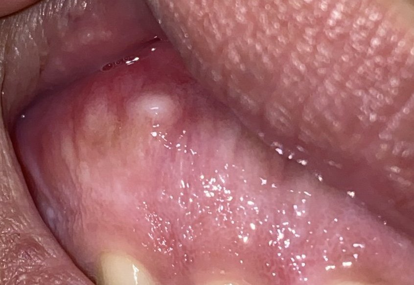 Здравейте пускам тази снимка за да разбера повече информация.Не боли не дразни не е некомфортно като цяло никакъв проблем не прави просто го забелязах на скоро и не знам дали е проблем или не.Бях на зъболекар каза ми че е от коста нещо..Като топченце не е меко пада се над кучешкия зъб .Благодаря предварително