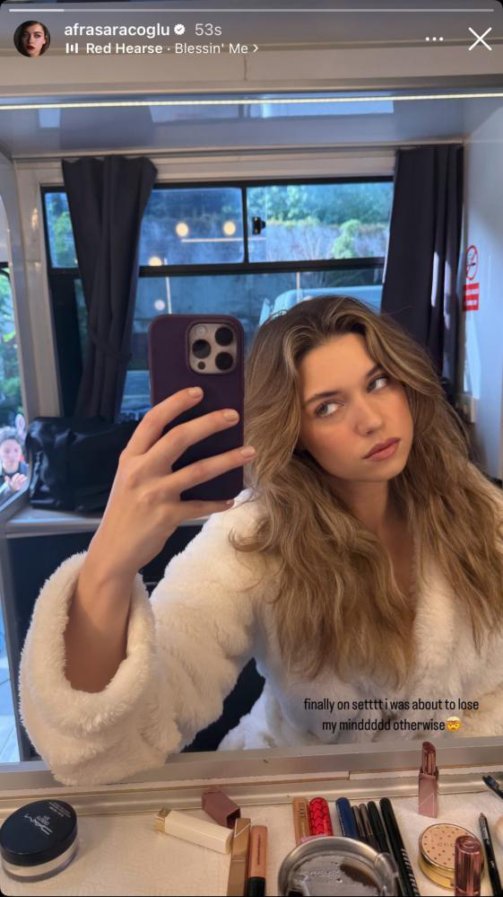 На 9 май пусна тази снимка с надпис: "Най-после на сет, вече щях да се побъркам", за пауза от около месец /между края на Рибарче и снимките за GoTurkiye/, та до септември....