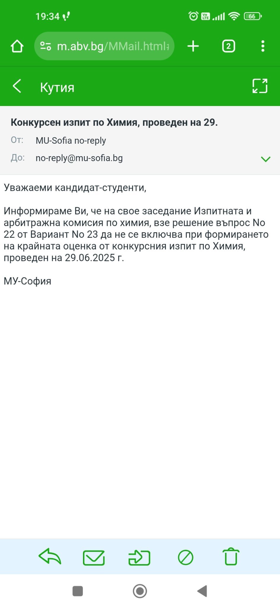 Относно: Изключване на задача №22 от сборника на МУ София, като част от редовния изпит по химия, проведен на 29.06 - кандидатстудентска кампания 2025/2026