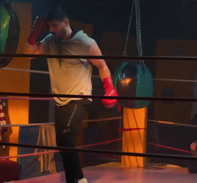 Фърат и неговият опонент Benjamin Doukha се бият в в зала, без зрители. Тук се  сблъскват преди мача.