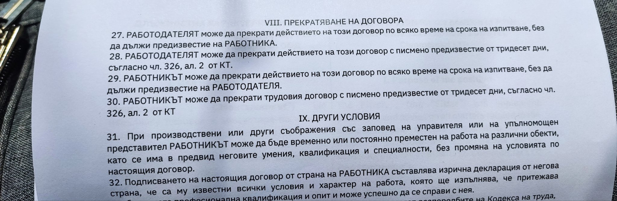 Имам ли право на пълна борса, ако договорът е прекратен на основание чл.326 Ал.2