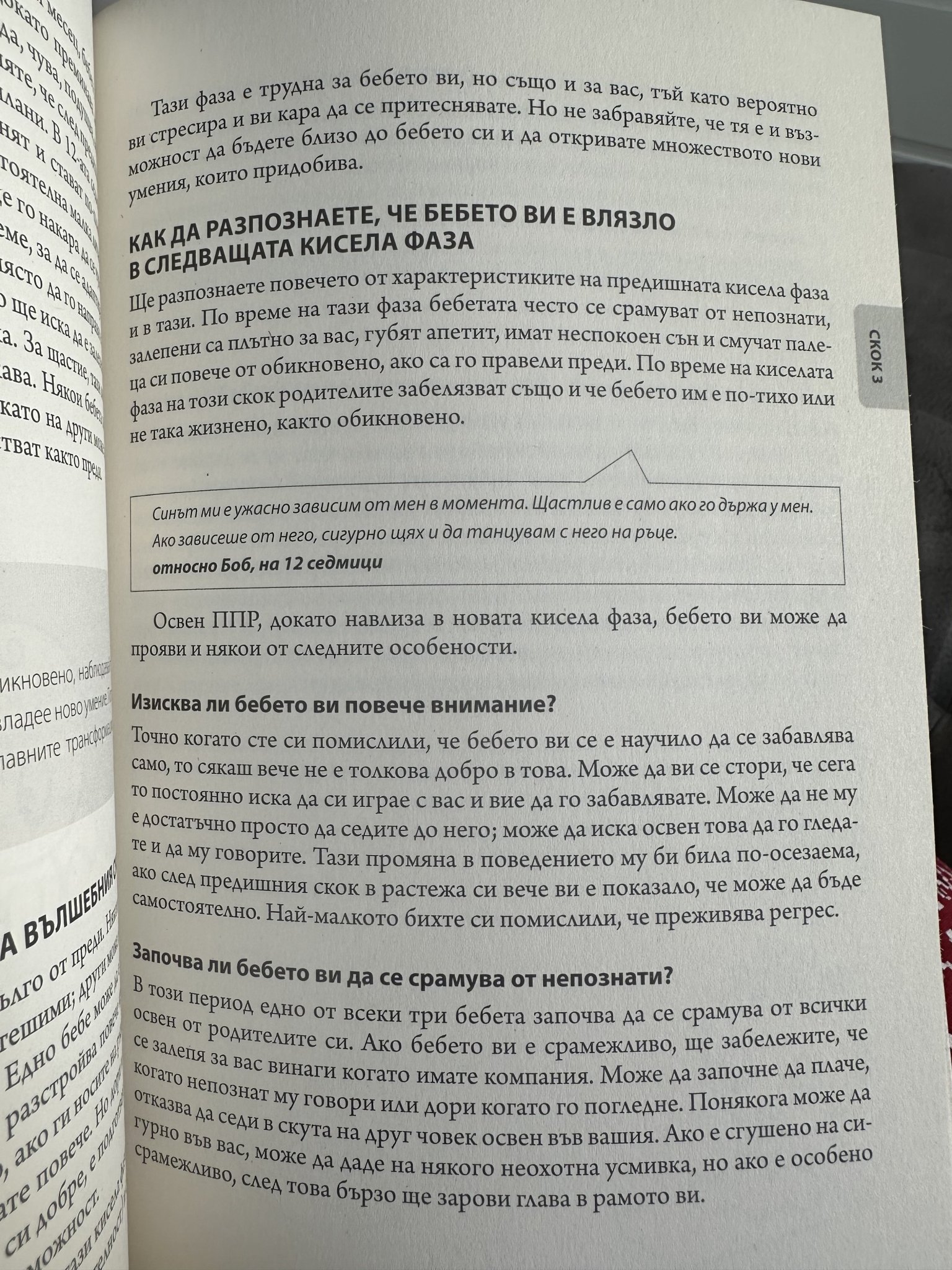Ники е точно в 12та седмица и това което виждам е, че заспиването през деня му отнема мноооого време (осъзнах, че за това плаче и в количката) иска да го приспиваме, защото не може да се успокои сам. Дори и на ръце с шъшканв и бял шум му отнема 10-15мин да заспи. За сега нощния съм му е перфектен (като заспи в 21:30 се буди за едно кърмене към 6:00 сутринта), но през деня има проблем със запсиването. Ако пък му изпусна интервала на будуване по-дълго от час и половина става ужас..