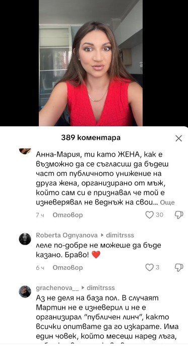 Тая Анна-Мария вече не мога да я трая. Само пише злобни коментари в социалната мрежа, заяжда се. В ролята на адвокатка на Мартин ли се вживява?
