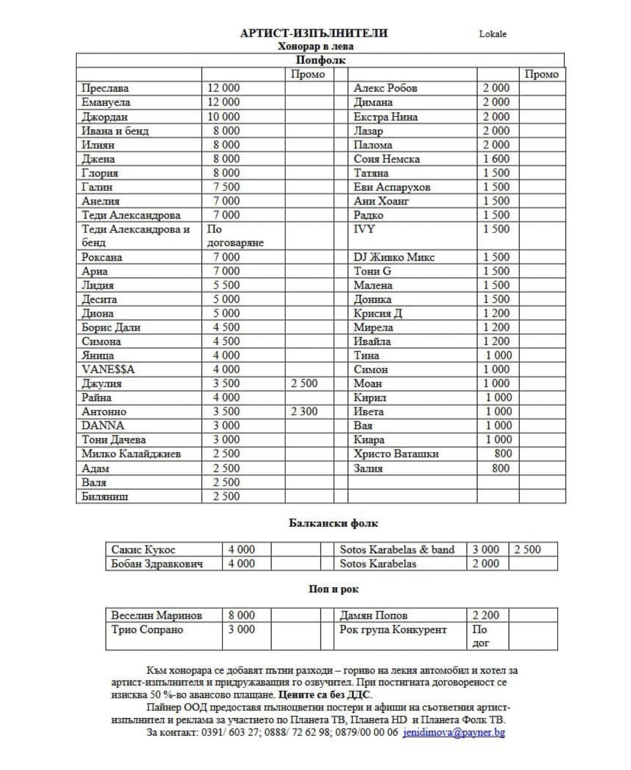 Няма изпълнител в България,който взима по 15000 хонорар на вечер