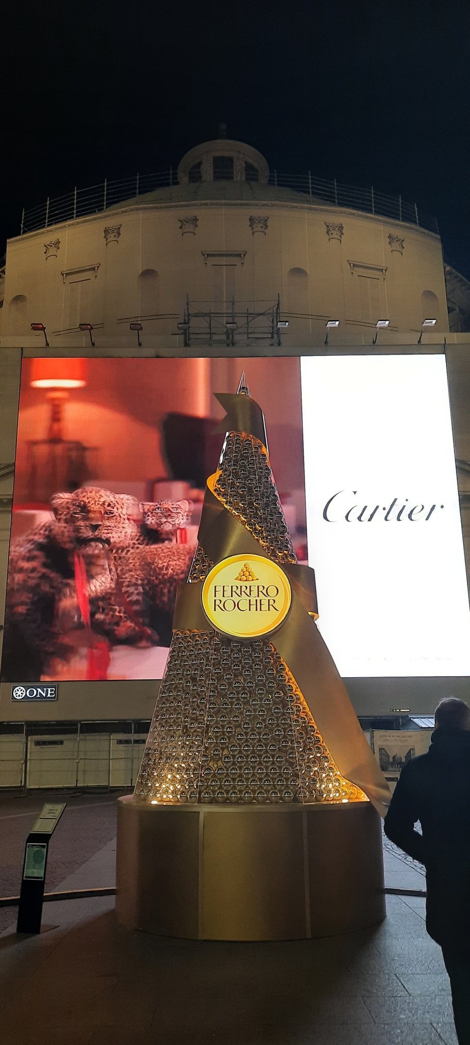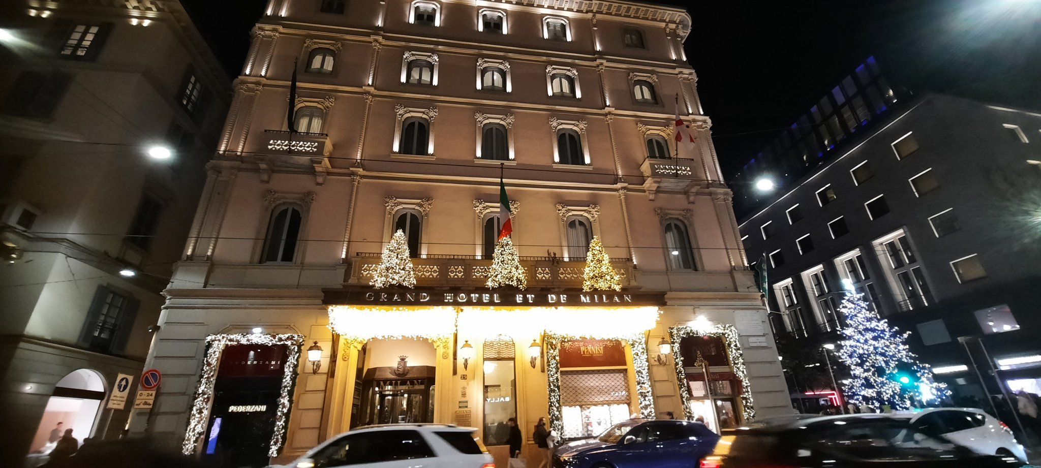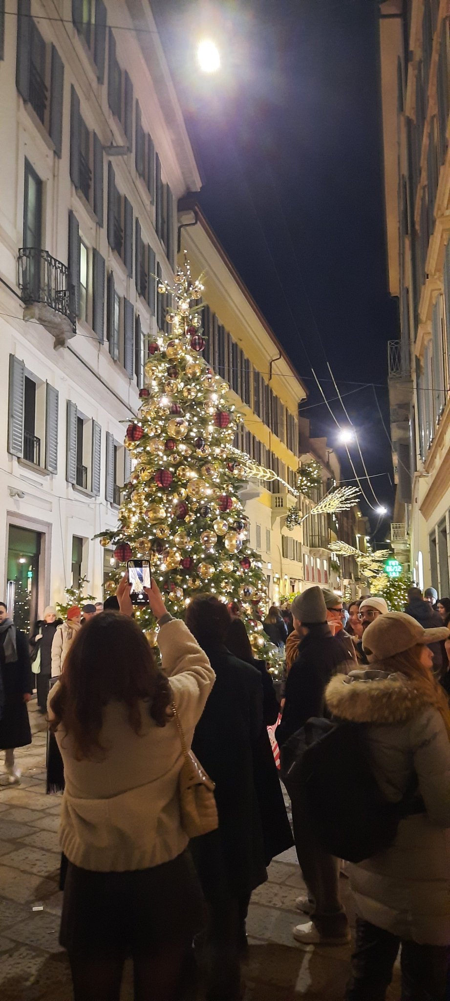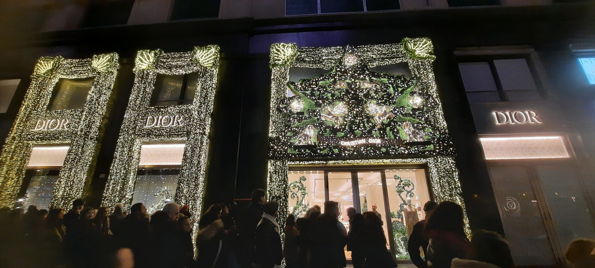 Украса по via Montenapoleone, бях я пускала на дневна светлина, сега на вечерна:
