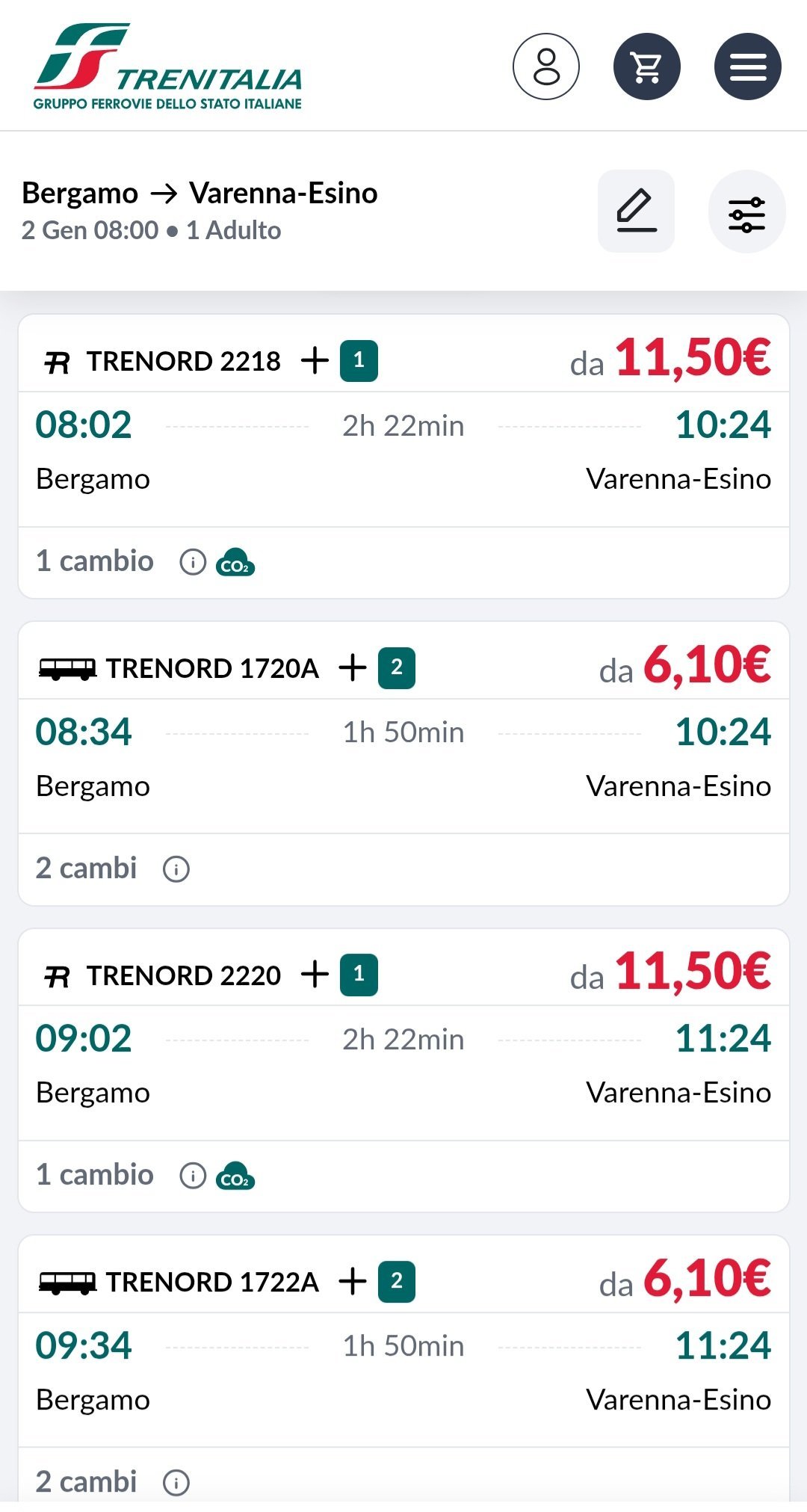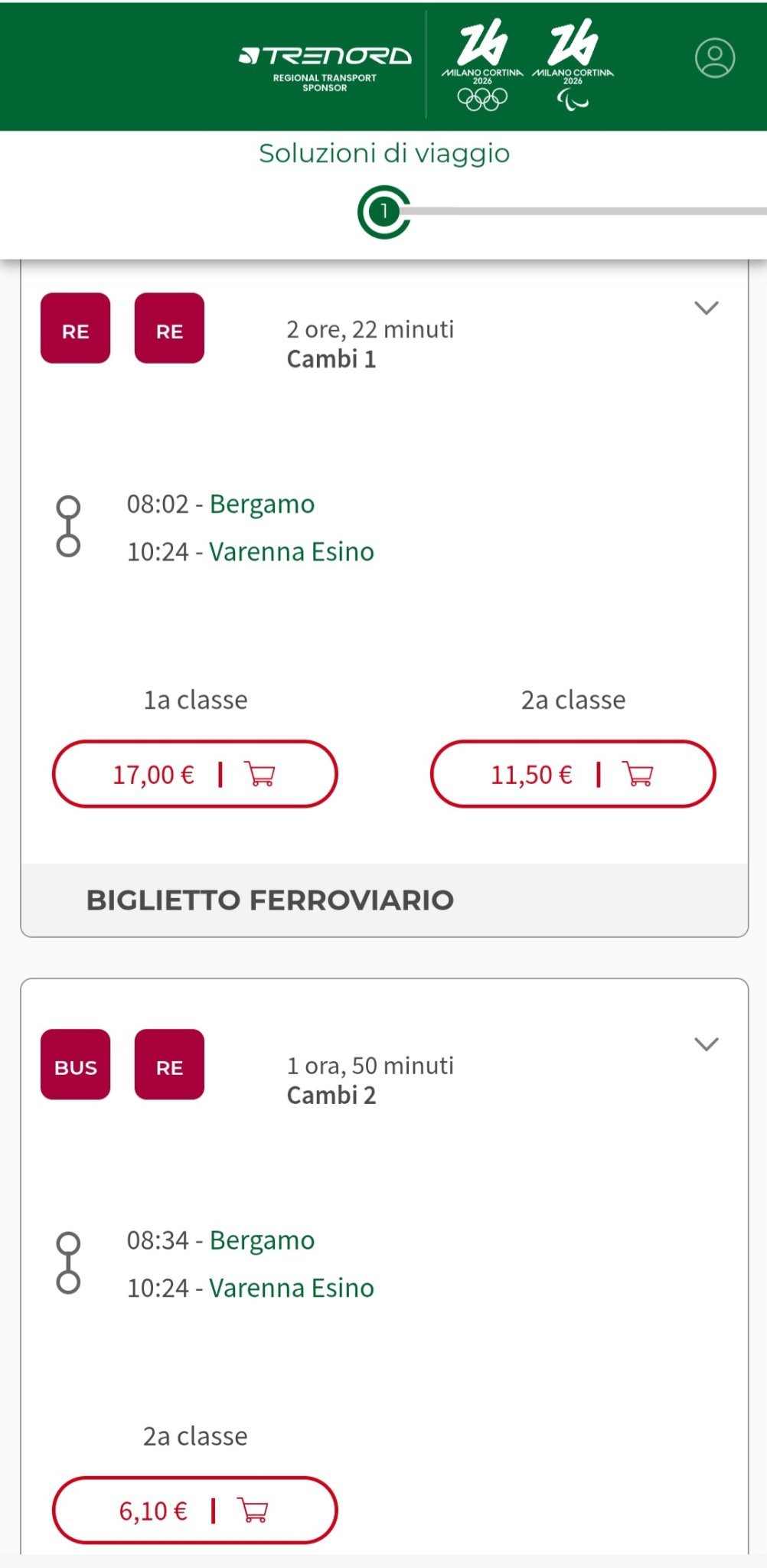 Особеност на първият вариант е, че поради ремонтни дейности от известно време, автобуси извозват пътниците от Бергамо до гарата на Ponte San Pietro, откъдето се хваща влака за Лекко.